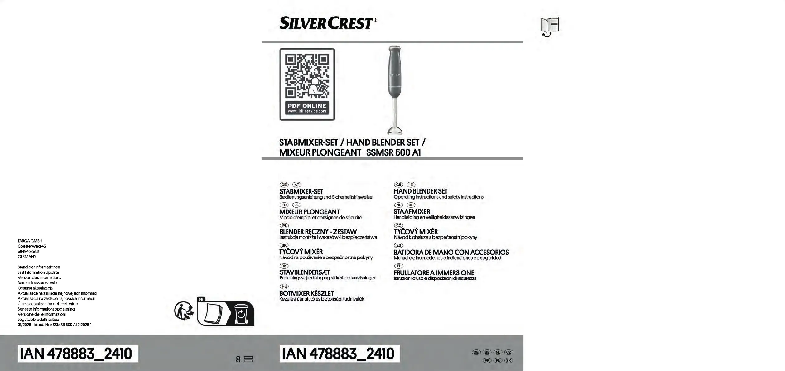 Läs gratis den bruksanvisning för Silvercrest SSMSR 600 A1 (278 sidor) i kategorin Stavmixer. Guiden har ansetts hjälpsam av 2 personer och har ett genomsnittsbetyg på 4.8 stjärnor baserat på 2 recensioner. Har du en fråga om Silvercrest SSMSR 600 A1 eller vill du ställa frågor till andra användare av produkten? Ställ en fråga