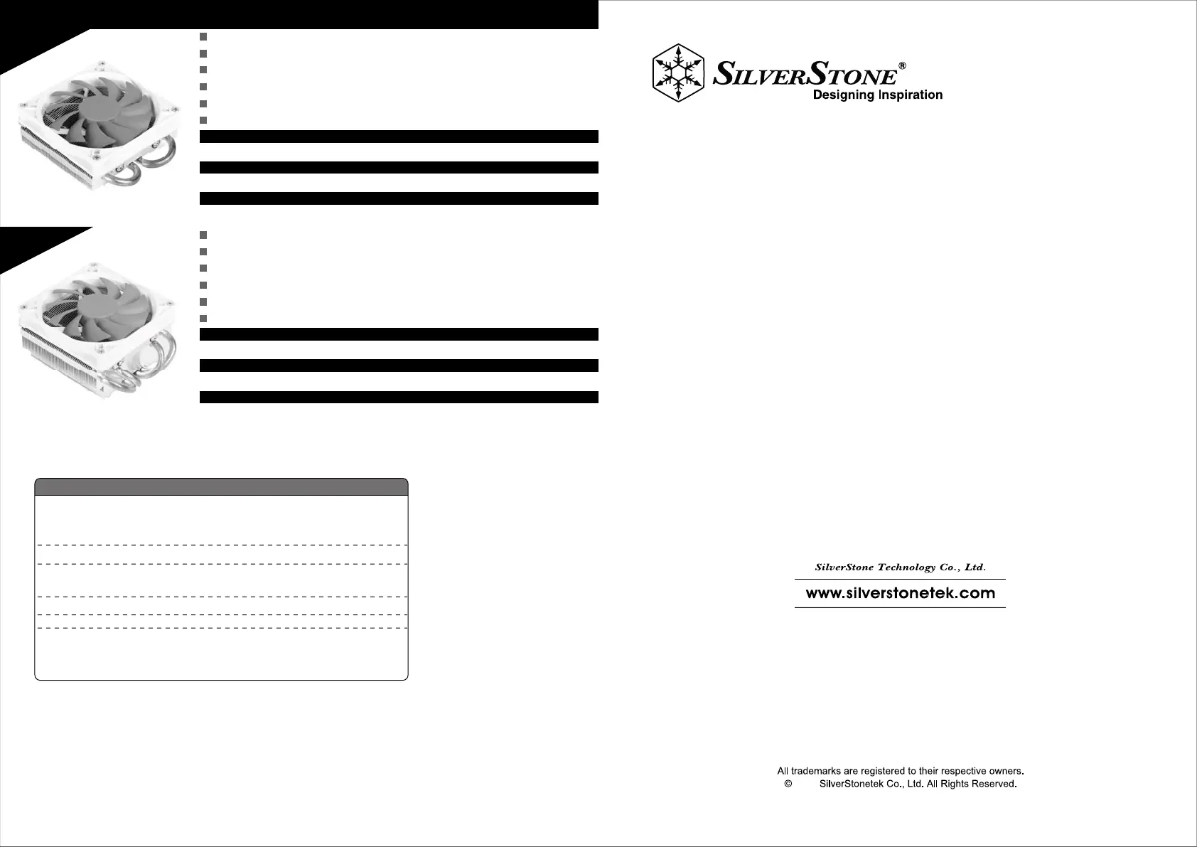 Please visit http://www.silverstonetek.com for the latest updates.