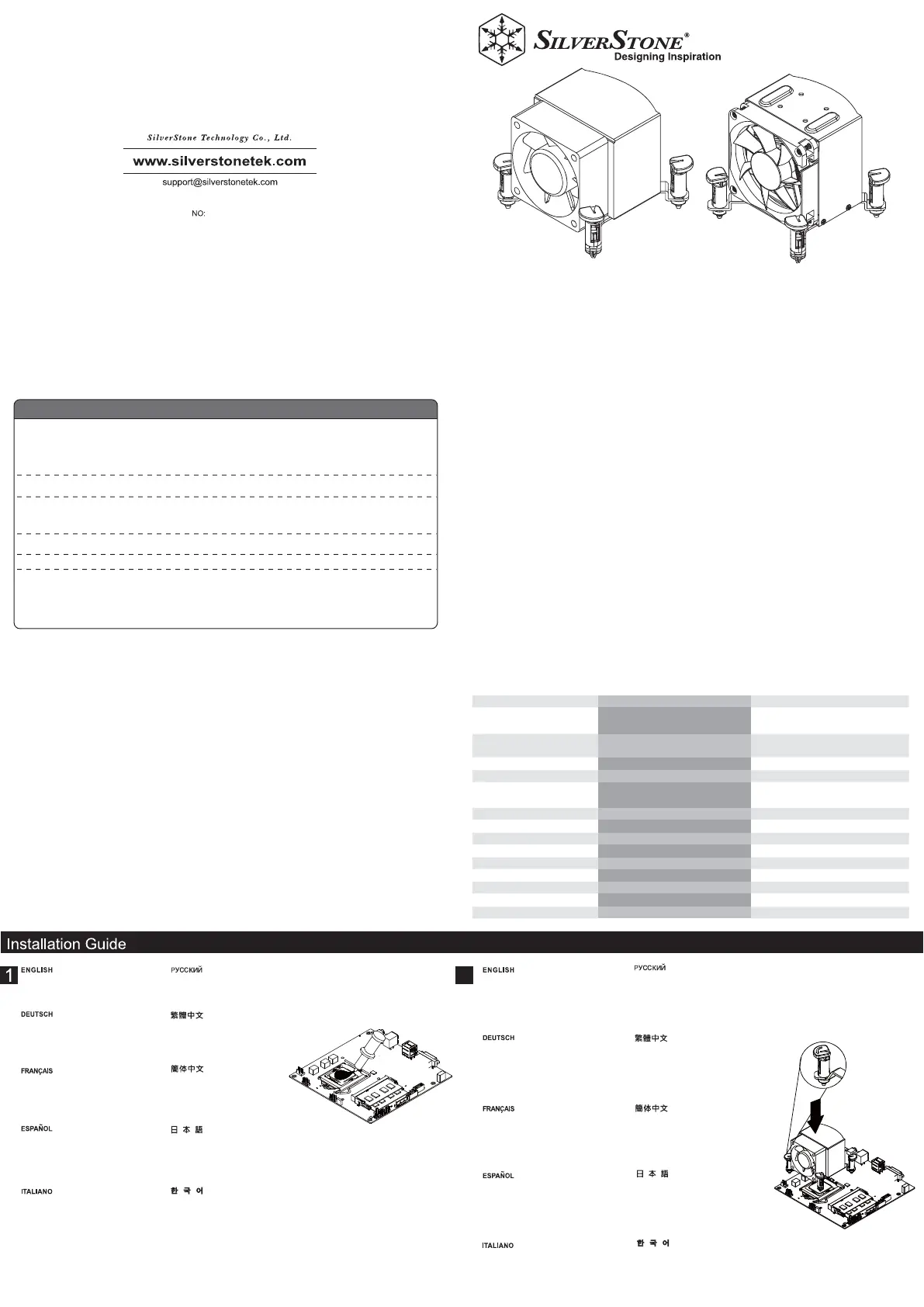 SilverStone Technology Co., Ltd. 12F No. 168 Jiankang Rd., Zhonghe Dist., New Taipei City 235 Taiwan R.O.C. + 886-2-8228-1238
