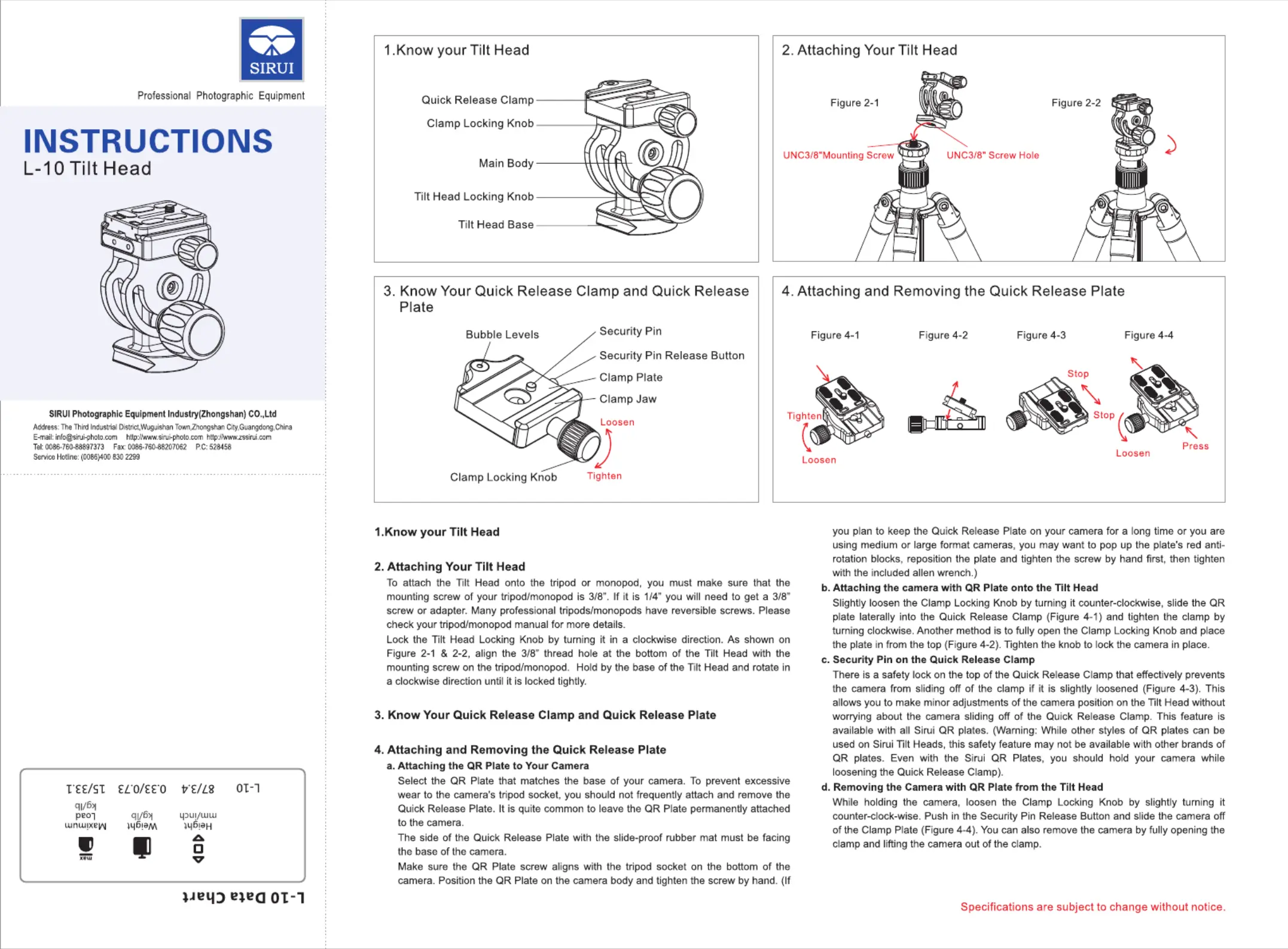 Sirui L-10 Bruksanvisning
