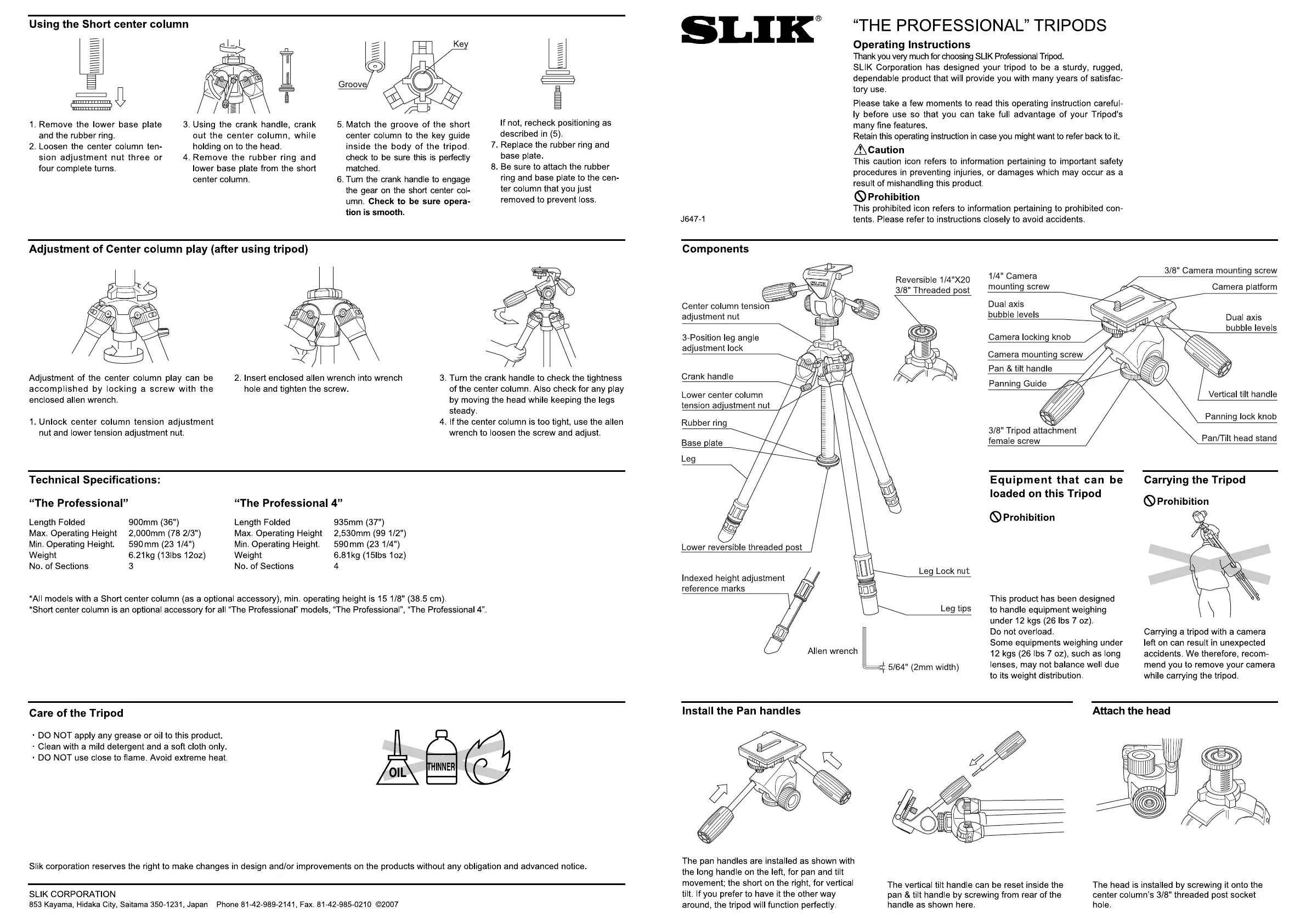 Läs gratis den bruksanvisning för Slik Professional 4 (2 sidor) i kategorin tripod. Guiden har ansetts hjälpsam av 2 personer och har ett genomsnittsbetyg på 4.7 stjärnor baserat på 7 recensioner. Har du en fråga om Slik Professional 4 eller vill du ställa frågor till andra användare av produkten? Ställ en fråga