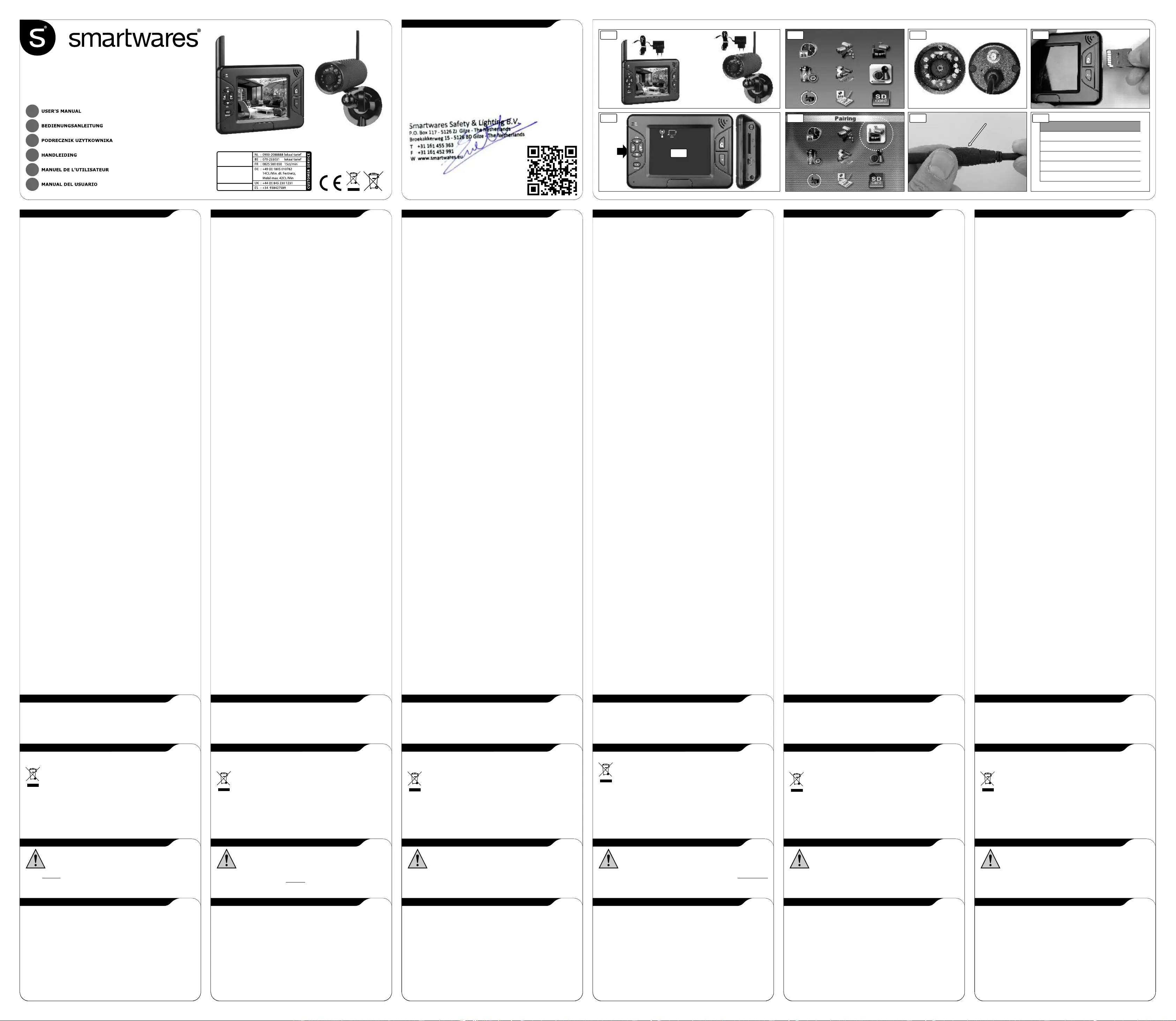 Läs gratis den bruksanvisning för Smartwares CS83DVR (4 sidor) i kategorin övervakningskamera. Guiden har ansetts hjälpsam av 14 personer och har ett genomsnittsbetyg på 3.7 stjärnor baserat på 7.5 recensioner. Har du en fråga om Smartwares CS83DVR eller vill du ställa frågor till andra användare av produkten? Ställ en fråga