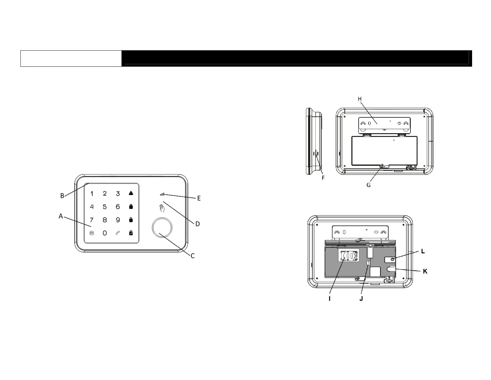 F. Speaker G. Battery cover H. Wall mounting bracket