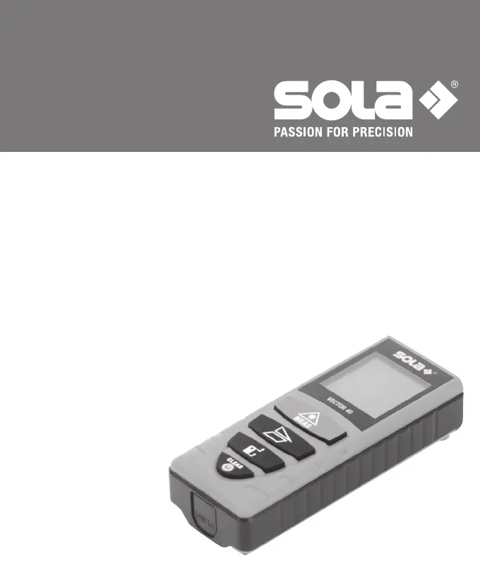 Läs gratis den bruksanvisning för Sola Vector 40 (23 sidor) i kategorin Avståndsmätare. Guiden har ansetts hjälpsam av 30 personer och har ett genomsnittsbetyg på 5.0 stjärnor baserat på 4 recensioner. Har du en fråga om Sola Vector 40 eller vill du ställa frågor till andra användare av produkten? Ställ en fråga