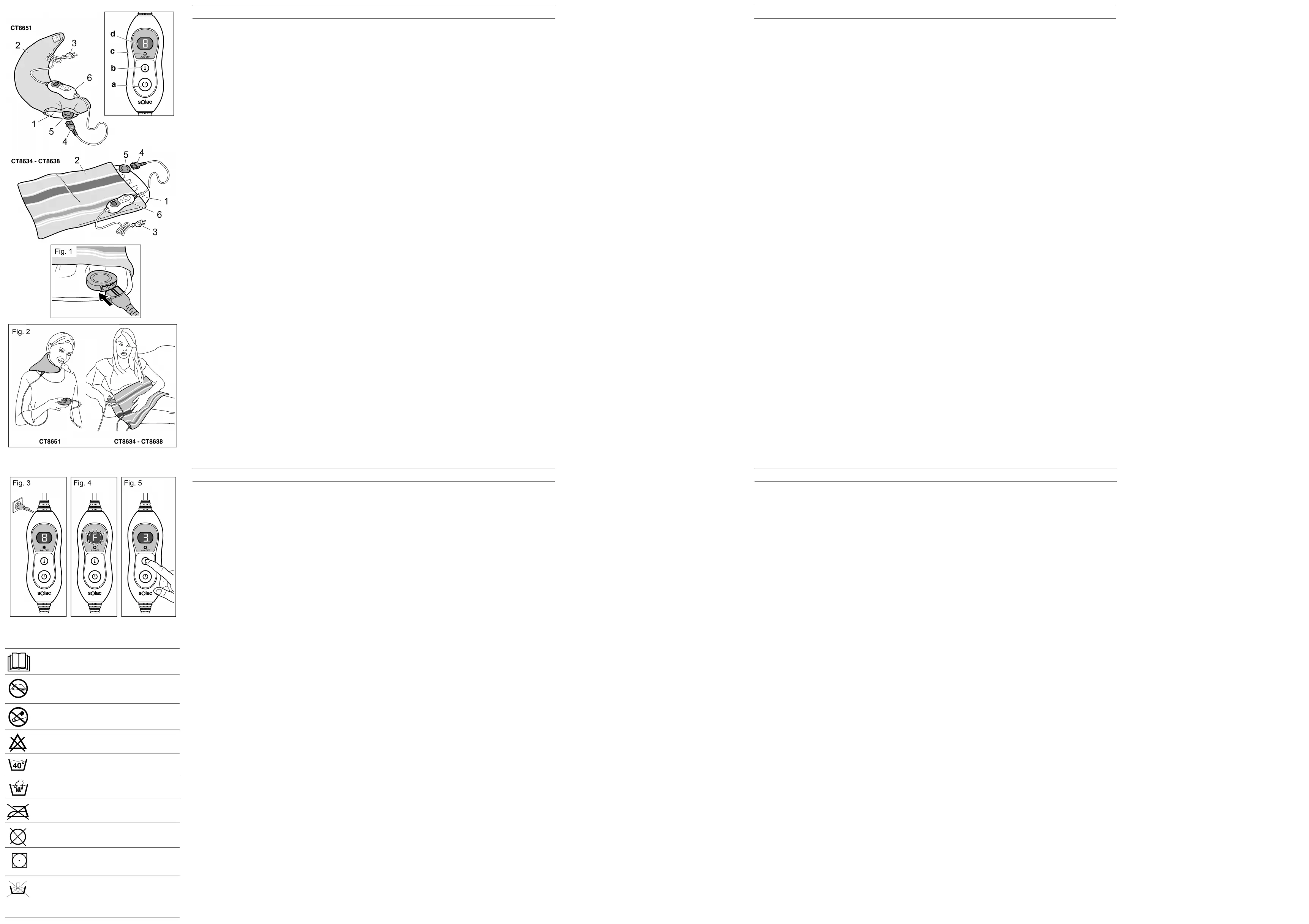 Läs gratis den bruksanvisning för Solac CT8651 (4 sidor) i kategorin Elektrisk filt/kudde. Guiden har ansetts hjälpsam av 16 personer och har ett genomsnittsbetyg på 4.7 stjärnor baserat på 2 recensioner. Har du en fråga om Solac CT8651 eller vill du ställa frågor till andra användare av produkten? Ställ en fråga