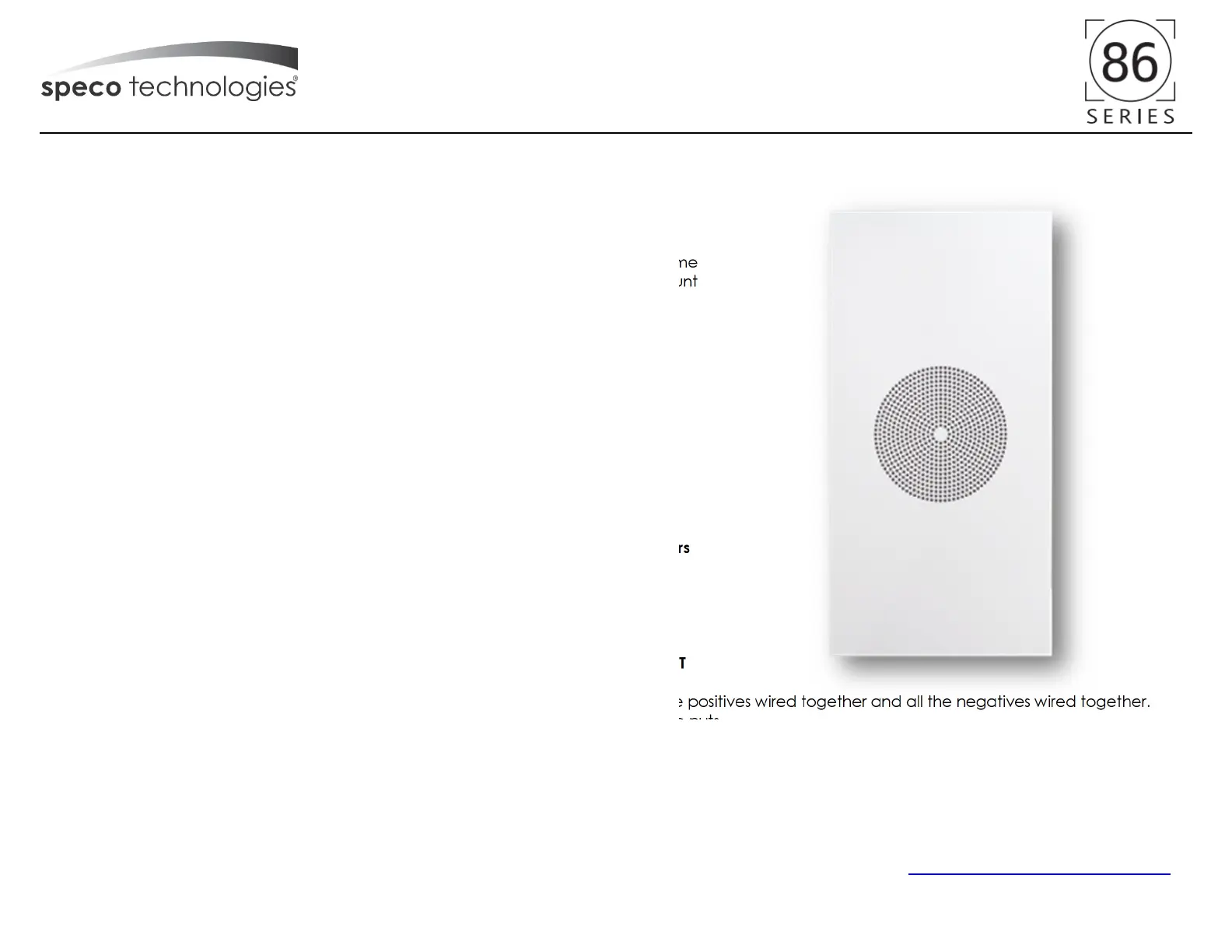 Thank you for your purchase of one of Speco Technologies 86 series speakers. This classic design sets the standard for background music and paging in