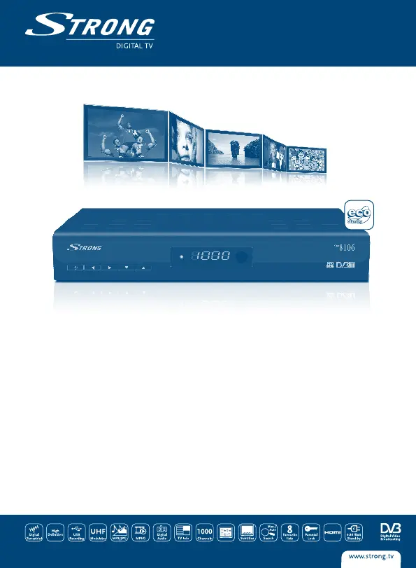 Läs gratis den bruksanvisning för Strong SRT 8106 (23 sidor) i kategorin Satellitmottagare. Guiden har ansetts hjälpsam av 23 personer och har ett genomsnittsbetyg på 3.8 stjärnor baserat på 12 recensioner. Har du en fråga om Strong SRT 8106 eller vill du ställa frågor till andra användare av produkten? Ställ en fråga