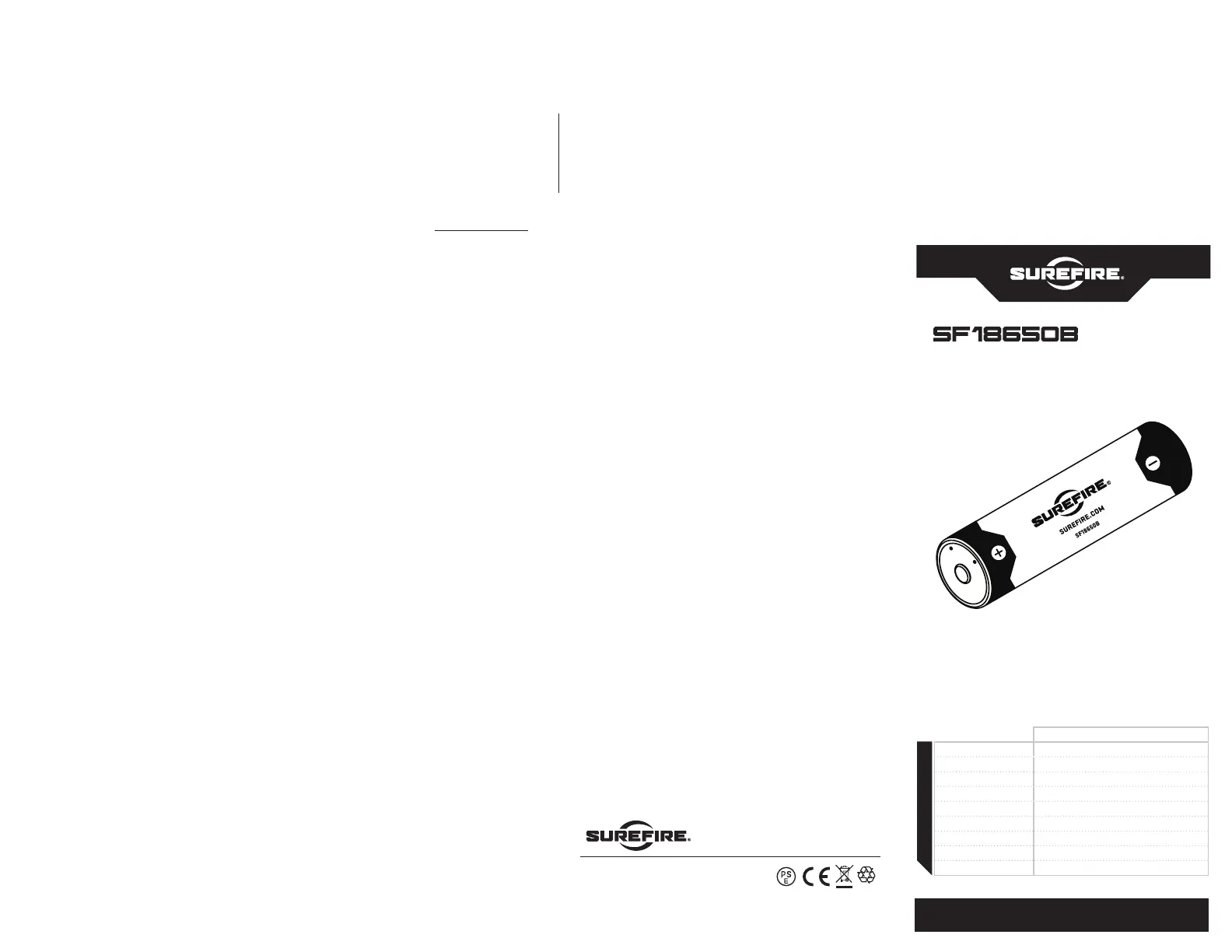 SureFire SF18650B Bruksanvisning