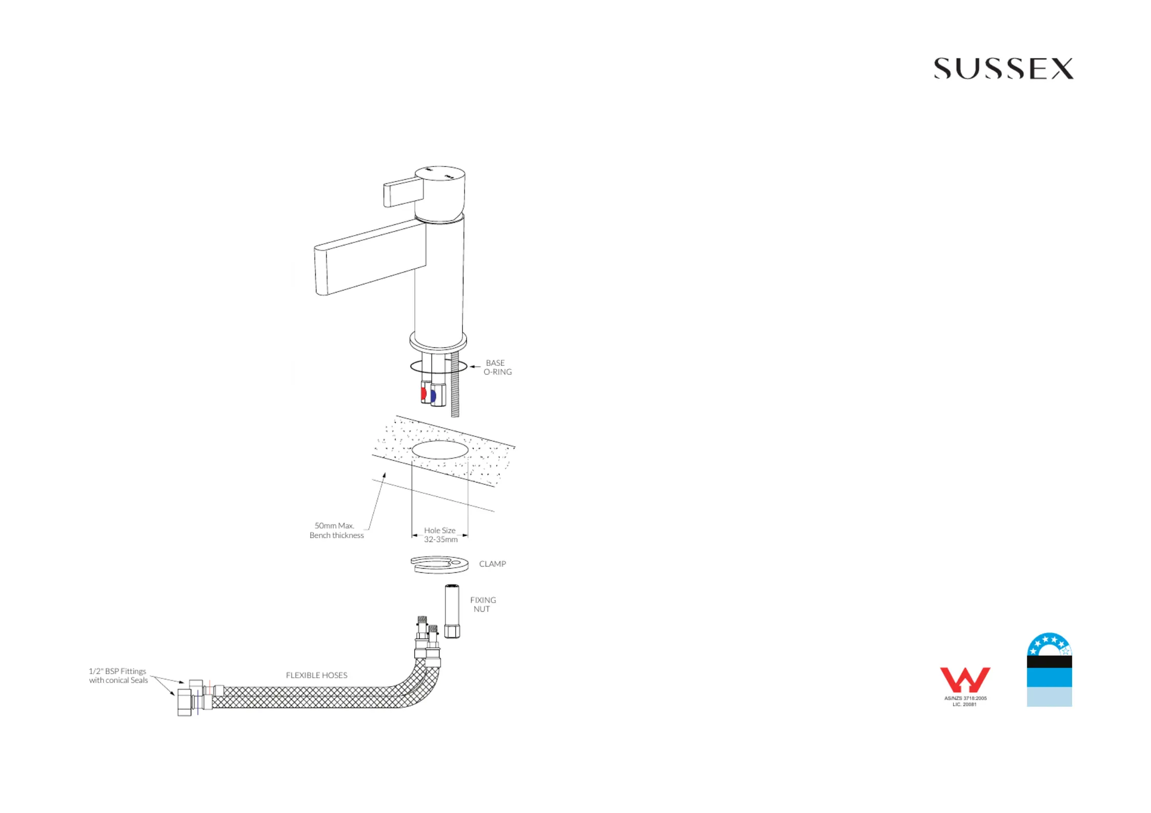 Tapware is to be installed by a Licensed Plumber in accordance with AS/NZS 3500:2003