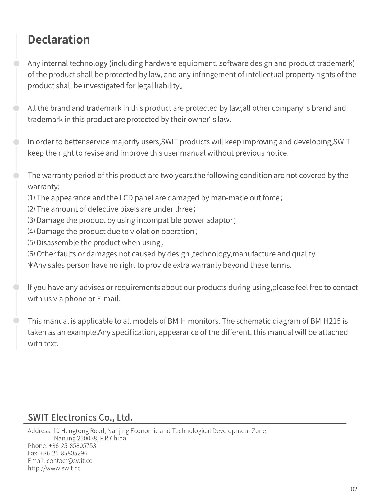 SWIT BM-H215HDR Bruksanvisning