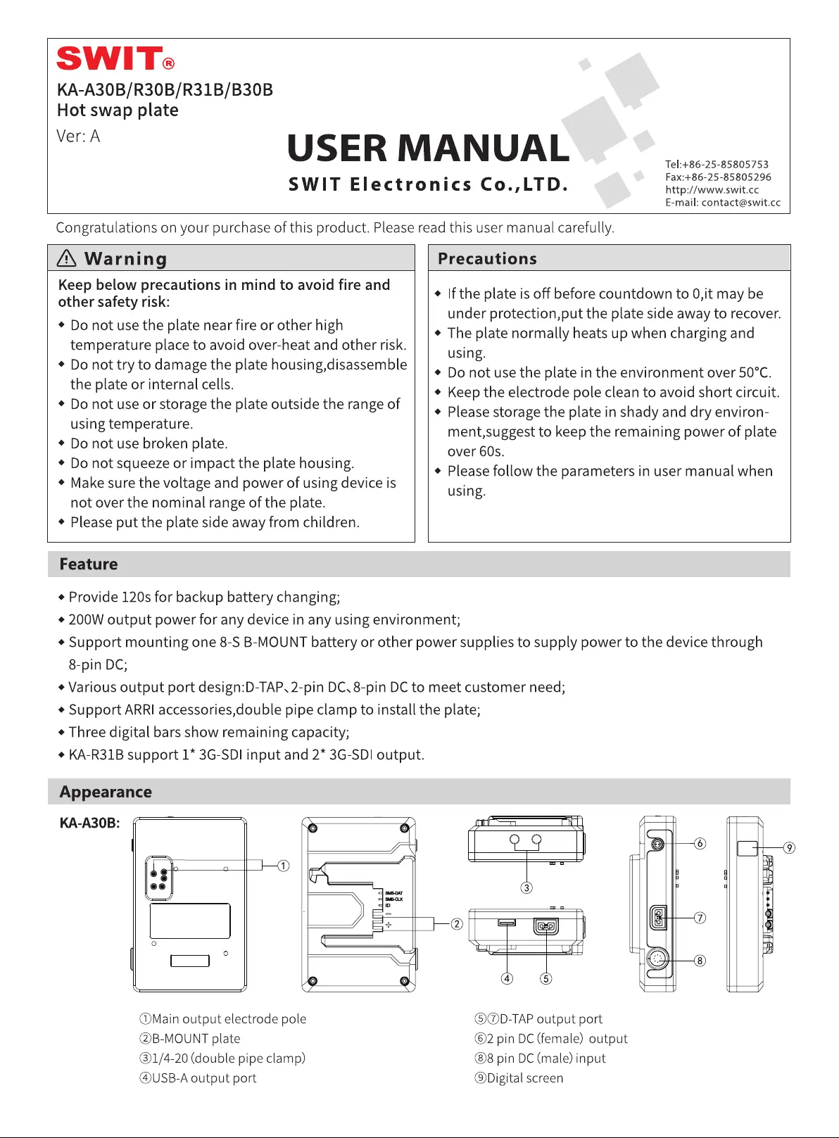 SWIT KA-B30B Bruksanvisning