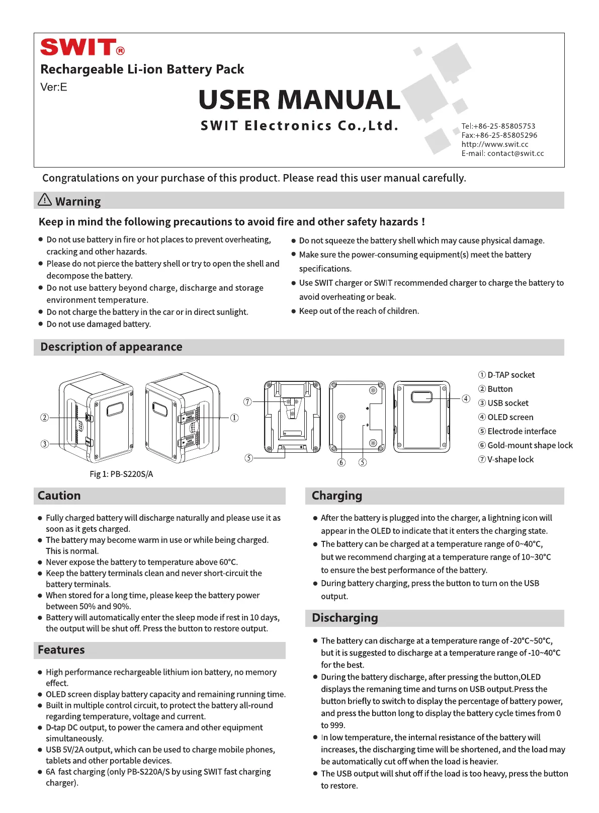 SWIT PB-S290S Bruksanvisning