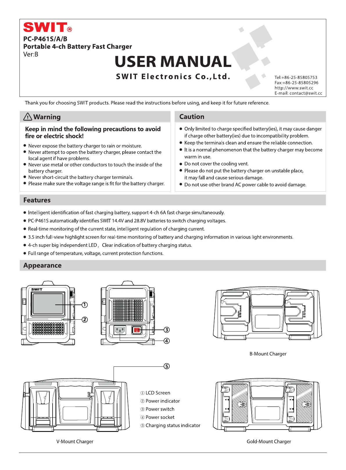 Batteriladdare SWIT Manualer