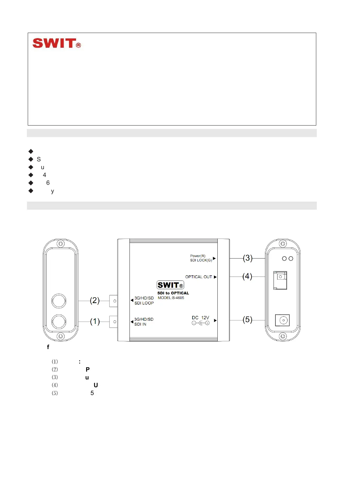 Läs gratis den bruksanvisning för SWIT S-4605 (3 sidor) i kategorin Audio/video-omvandlare. Guiden har ansetts hjälpsam av 23 personer och har ett genomsnittsbetyg på 4.7 stjärnor baserat på 12 recensioner. Har du en fråga om SWIT S-4605 eller vill du ställa frågor till andra användare av produkten? Ställ en fråga