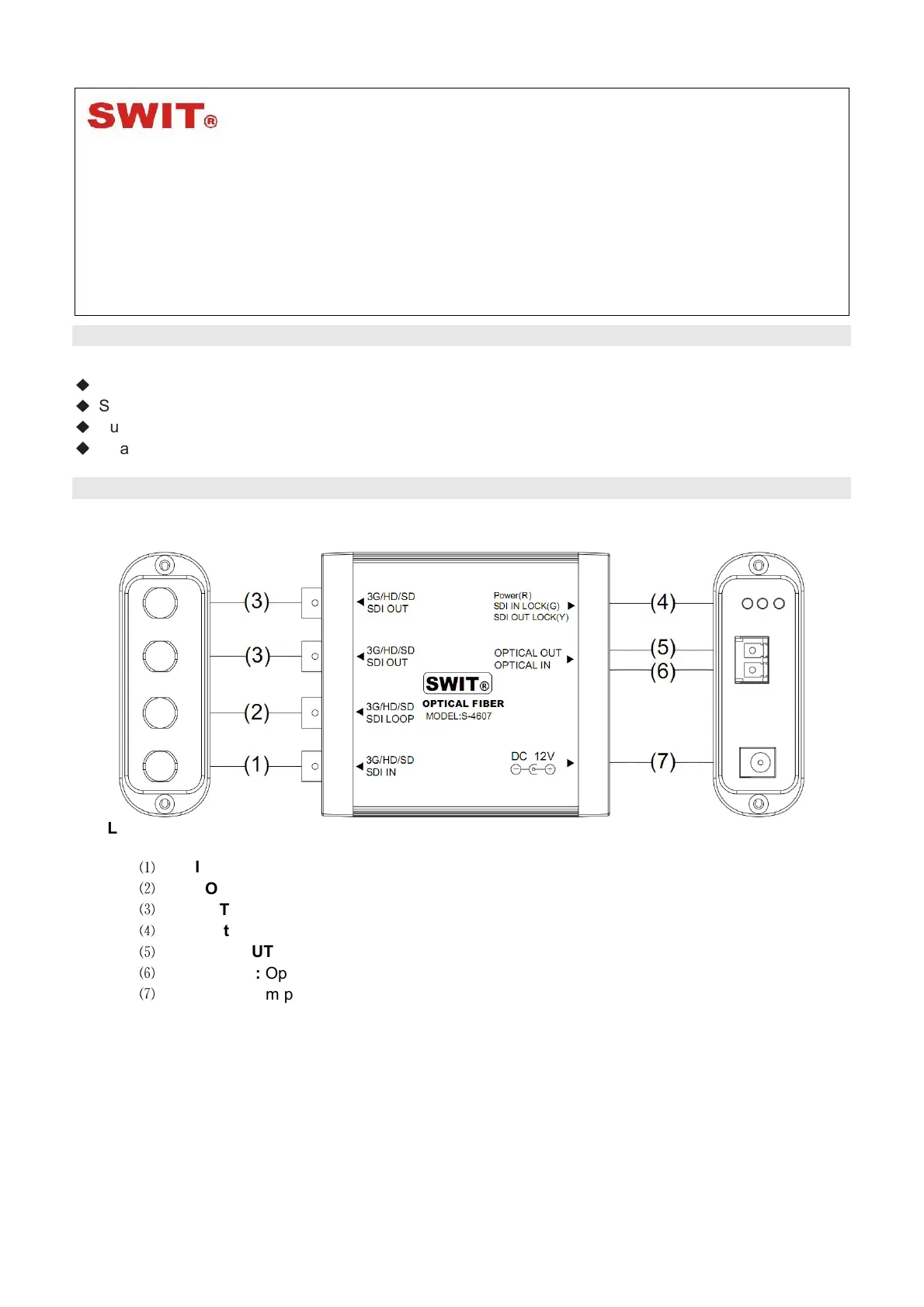 Läs gratis den bruksanvisning för SWIT S-4607 (3 sidor) i kategorin audio/video-omvandlare. Guiden har ansetts hjälpsam av 2 personer och har ett genomsnittsbetyg på 4.4 stjärnor baserat på 3 recensioner. Har du en fråga om SWIT S-4607 eller vill du ställa frågor till andra användare av produkten? Ställ en fråga