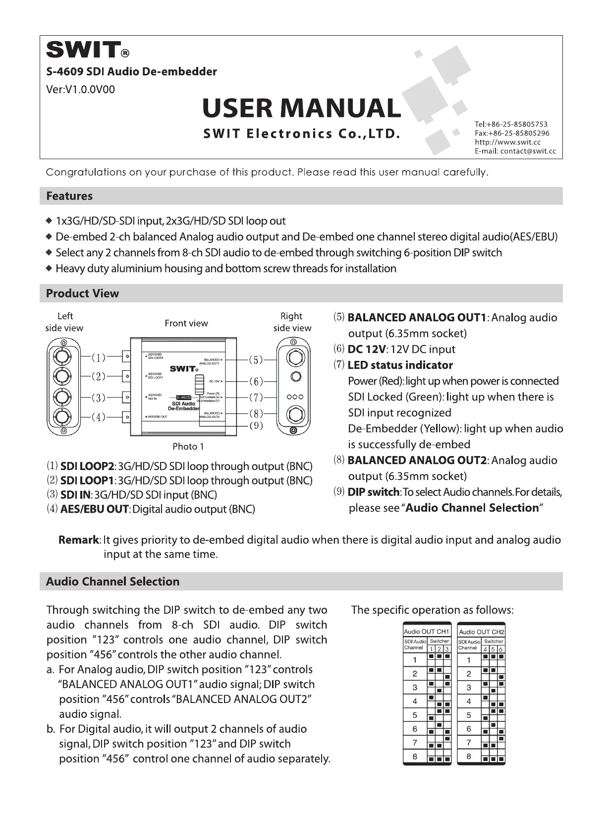 SWIT S-4609 Bruksanvisning