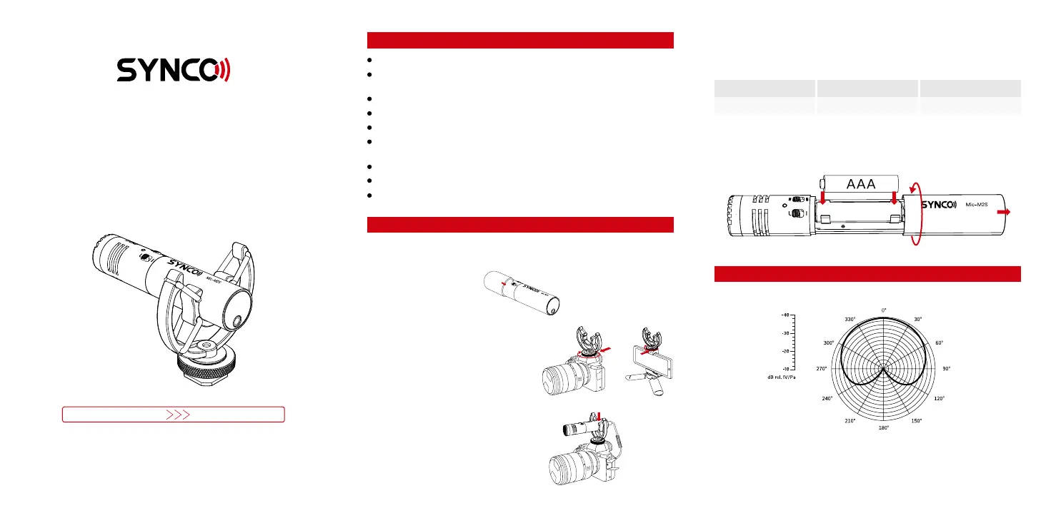 SYNCO Mic-M2S uses a replaceable AAA battery. Please install or replace the