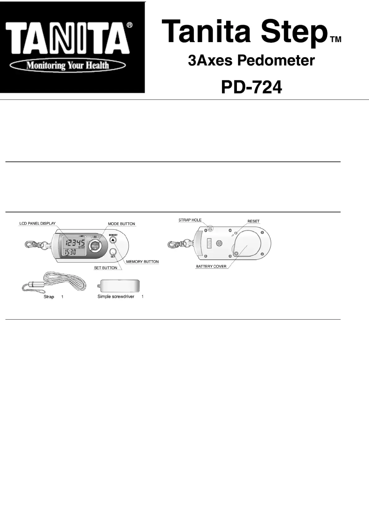 Tanita PD724 Bruksanvisning