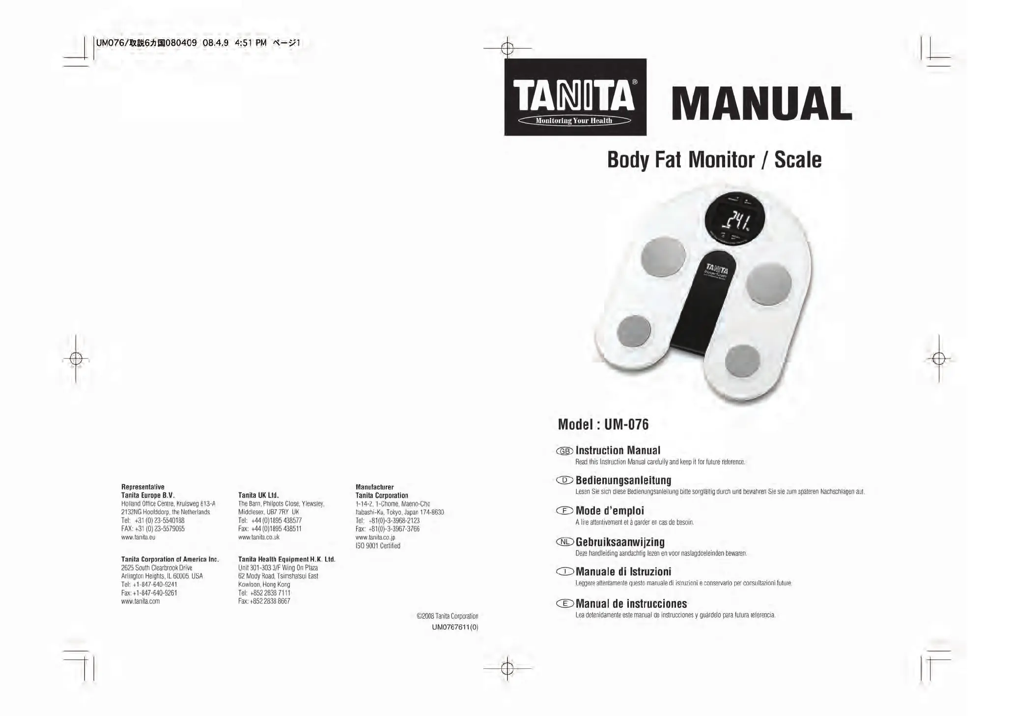 Läs gratis den bruksanvisning för Tanita UM-076 (57 sidor) i kategorin Vågen. Guiden har ansetts hjälpsam av 12 personer och har ett genomsnittsbetyg på 4.8 stjärnor baserat på 5 recensioner. Har du en fråga om Tanita UM-076 eller vill du ställa frågor till andra användare av produkten? Ställ en fråga