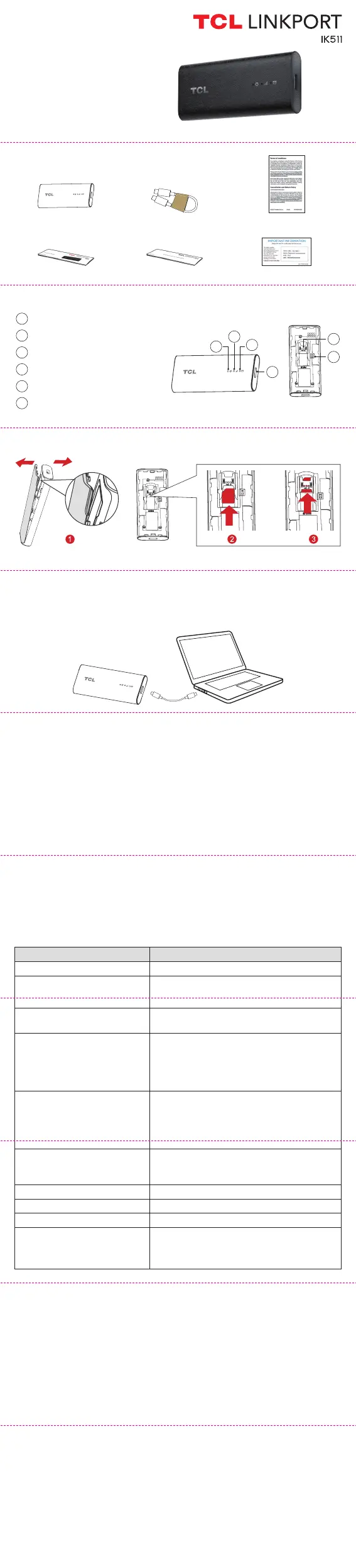 • Do not remove the Nano SIM card when the TCL LINKPORT IK511 is in use.