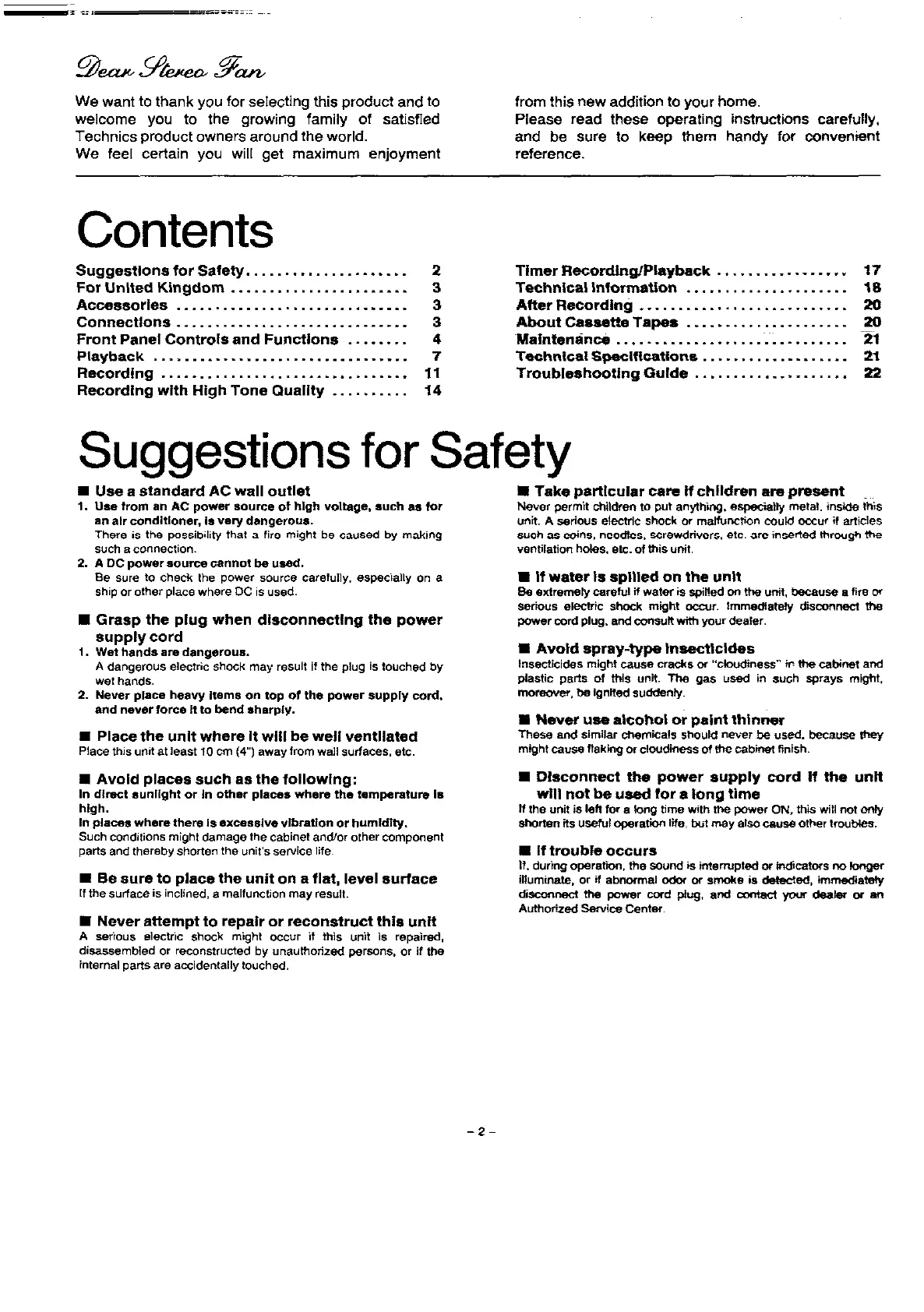 kassett spelare Technics Manualer