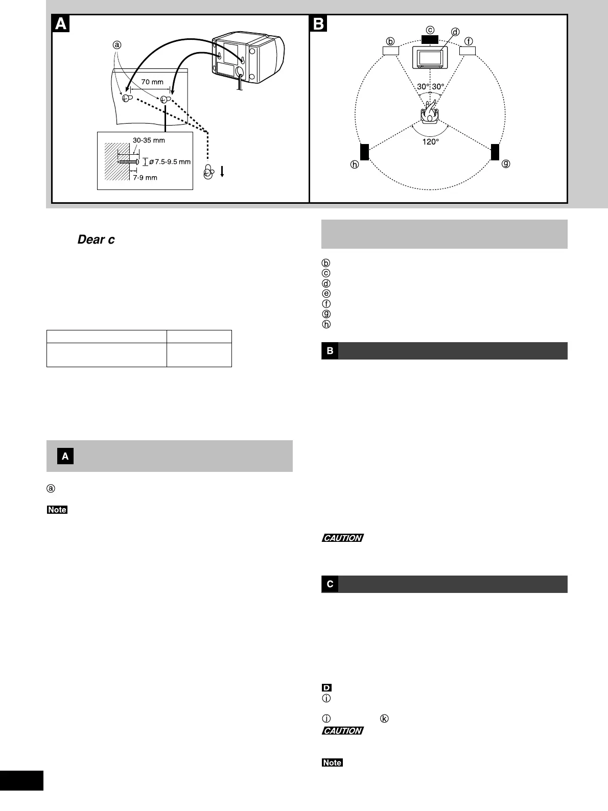 •Place the surround speakers on the side of or slightly behind the