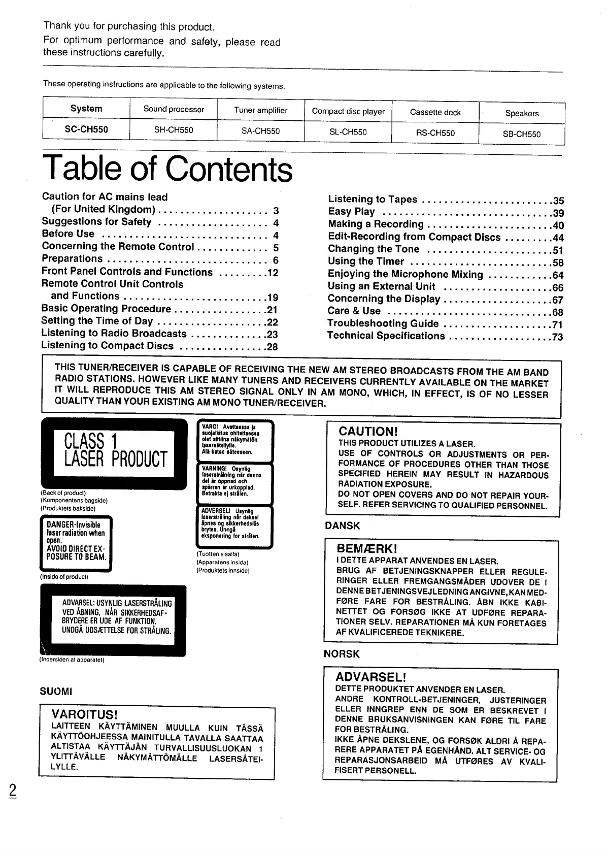 Technics SC-CH550 Bruksanvisning