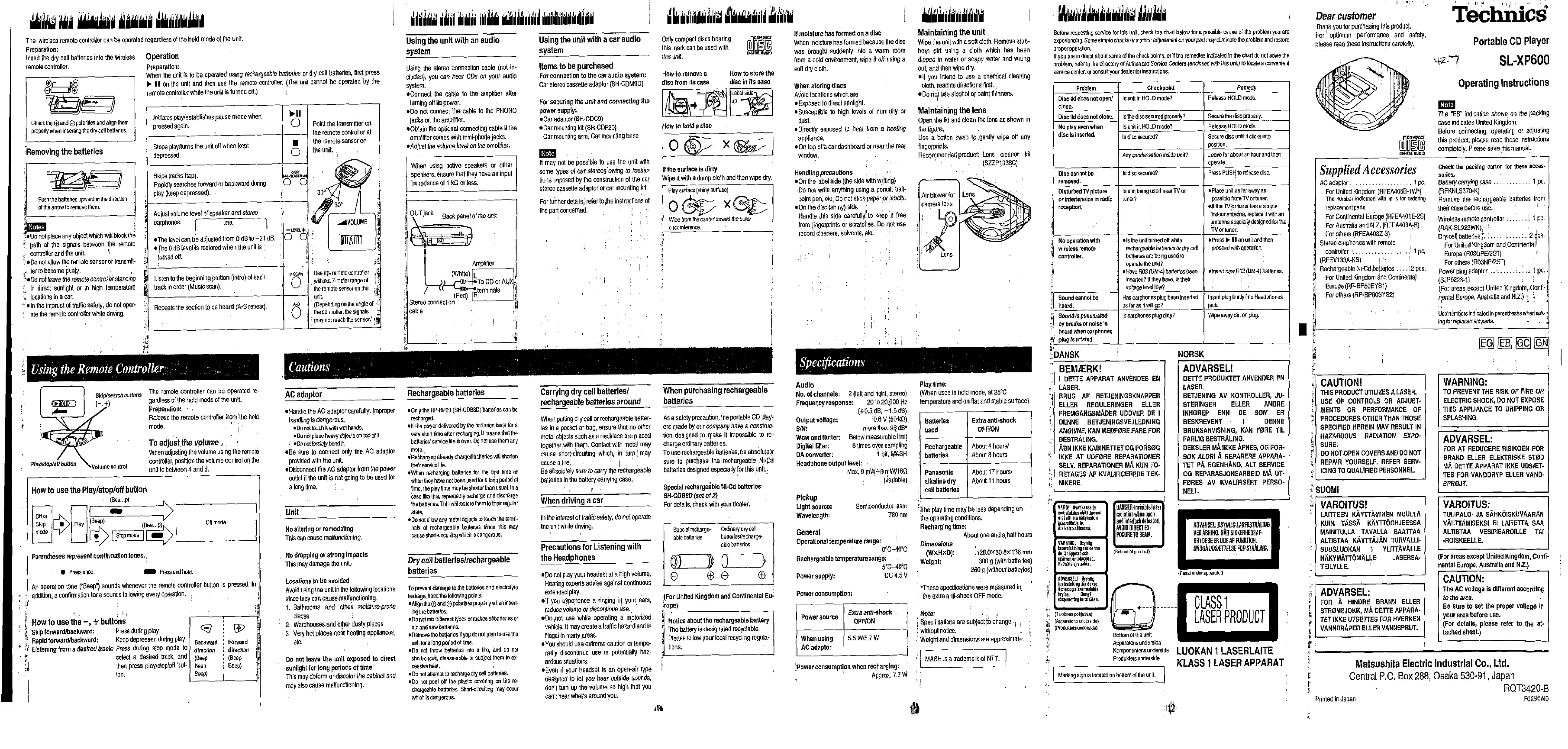 Läs gratis den bruksanvisning för Technics SL-XP600 (3 sidor) i kategorin Discmans. Guiden har ansetts hjälpsam av 36 personer och har ett genomsnittsbetyg på 4.5 stjärnor baserat på 18.5 recensioner. Har du en fråga om Technics SL-XP600 eller vill du ställa frågor till andra användare av produkten? Ställ en fråga