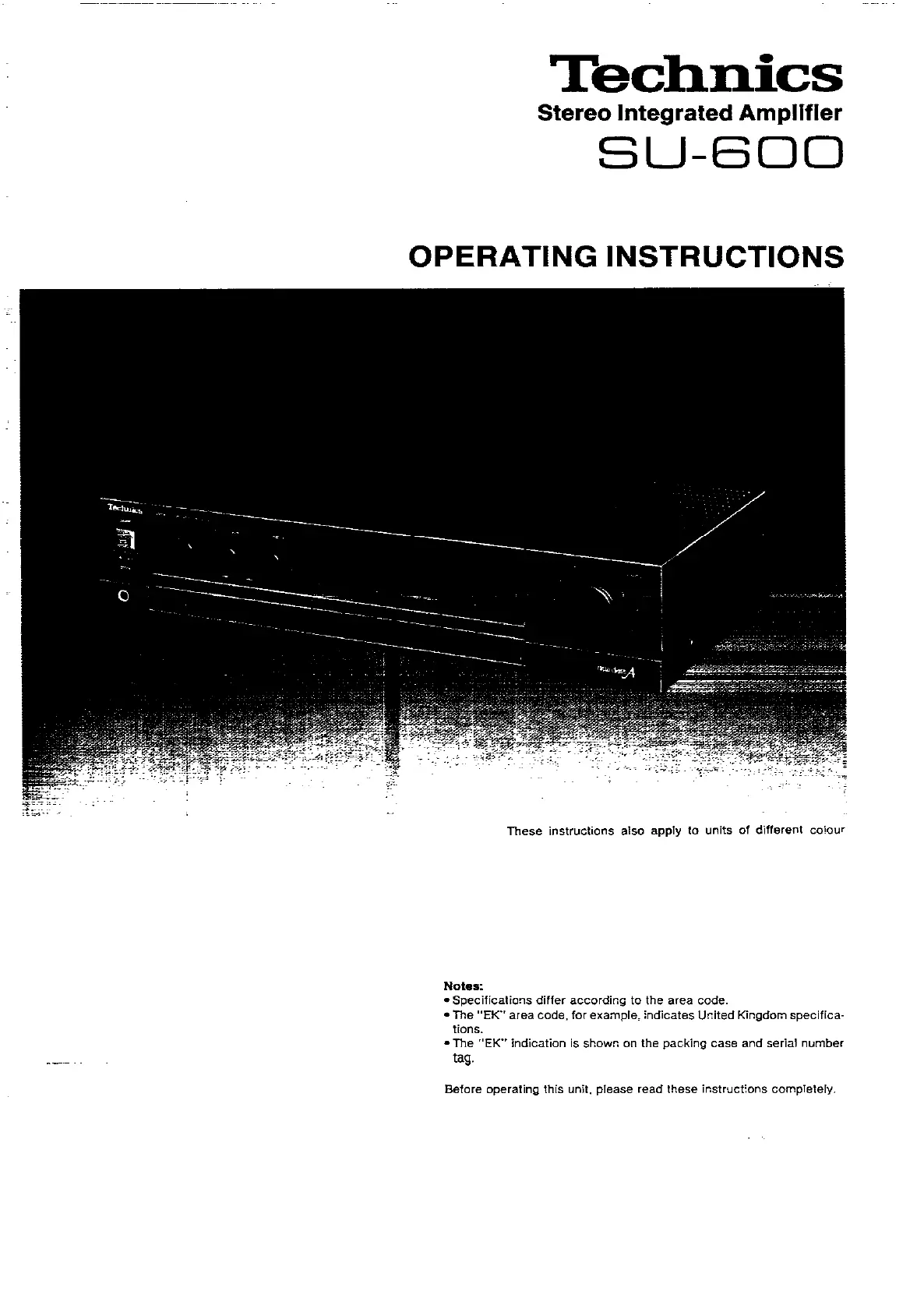 Technics SU-600 Bruksanvisning