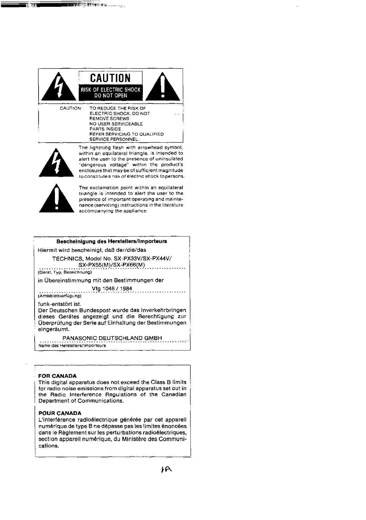 Technics SX-PX44V Bruksanvisning