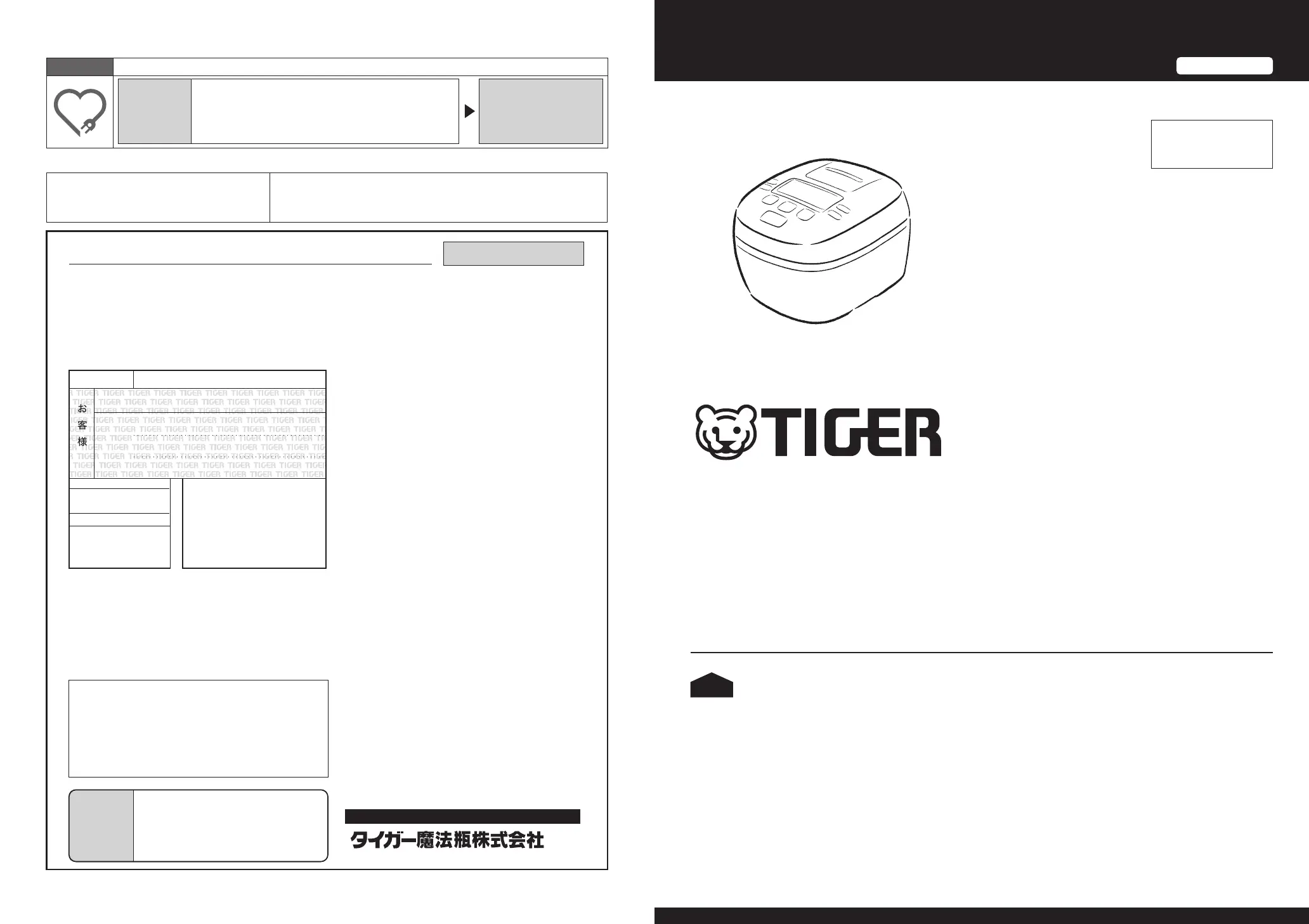 タイガー圧力IHジャー炊飯器保証書