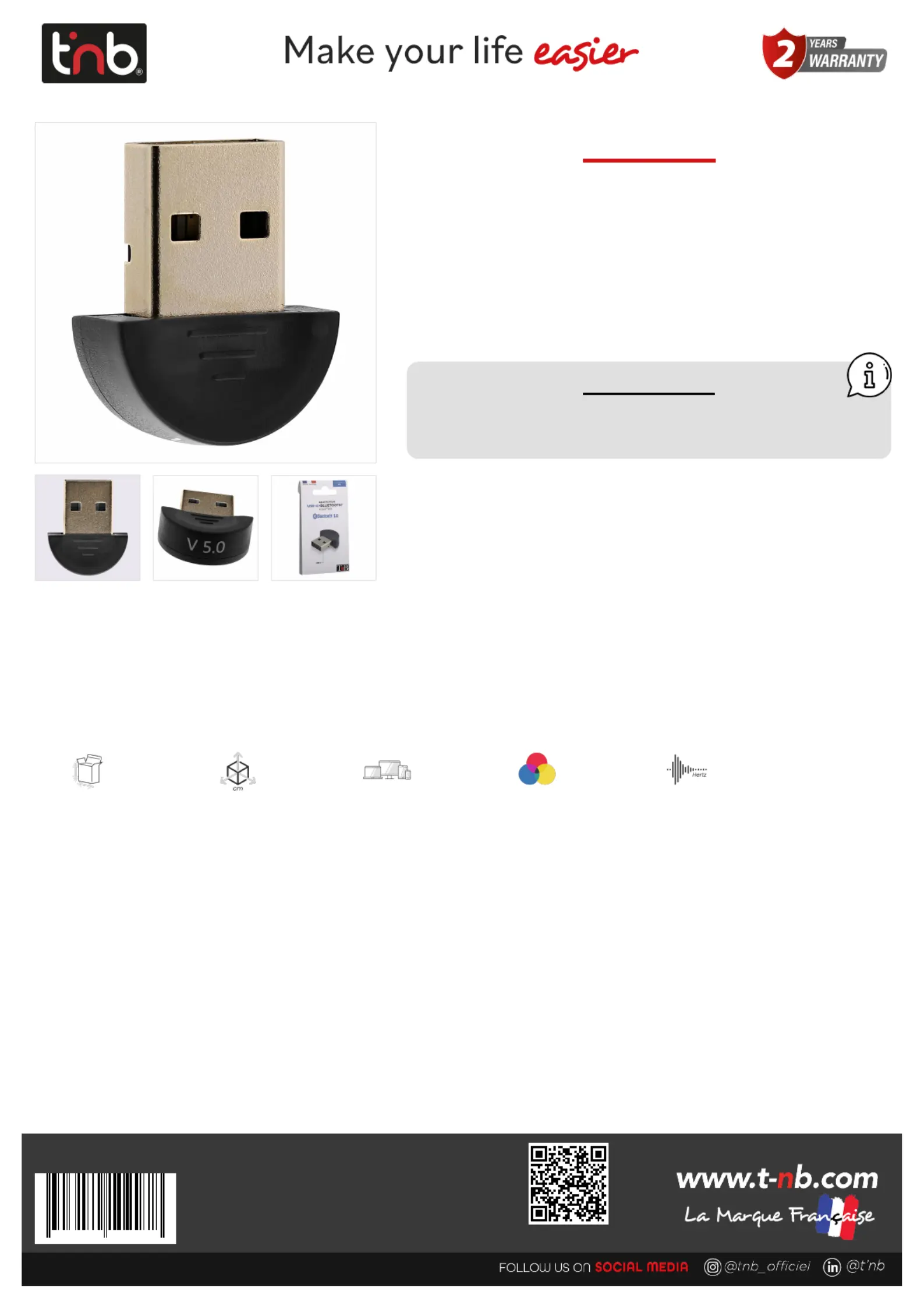 Läs gratis den bruksanvisning för T'nB ADABT5 (1 sidor) i kategorin ej kategoriserat. Guiden har ansetts hjälpsam av 3 personer och har ett genomsnittsbetyg på 4.8 stjärnor baserat på 2 recensioner. Har du en fråga om T'nB ADABT5 eller vill du ställa frågor till andra användare av produkten? Ställ en fråga