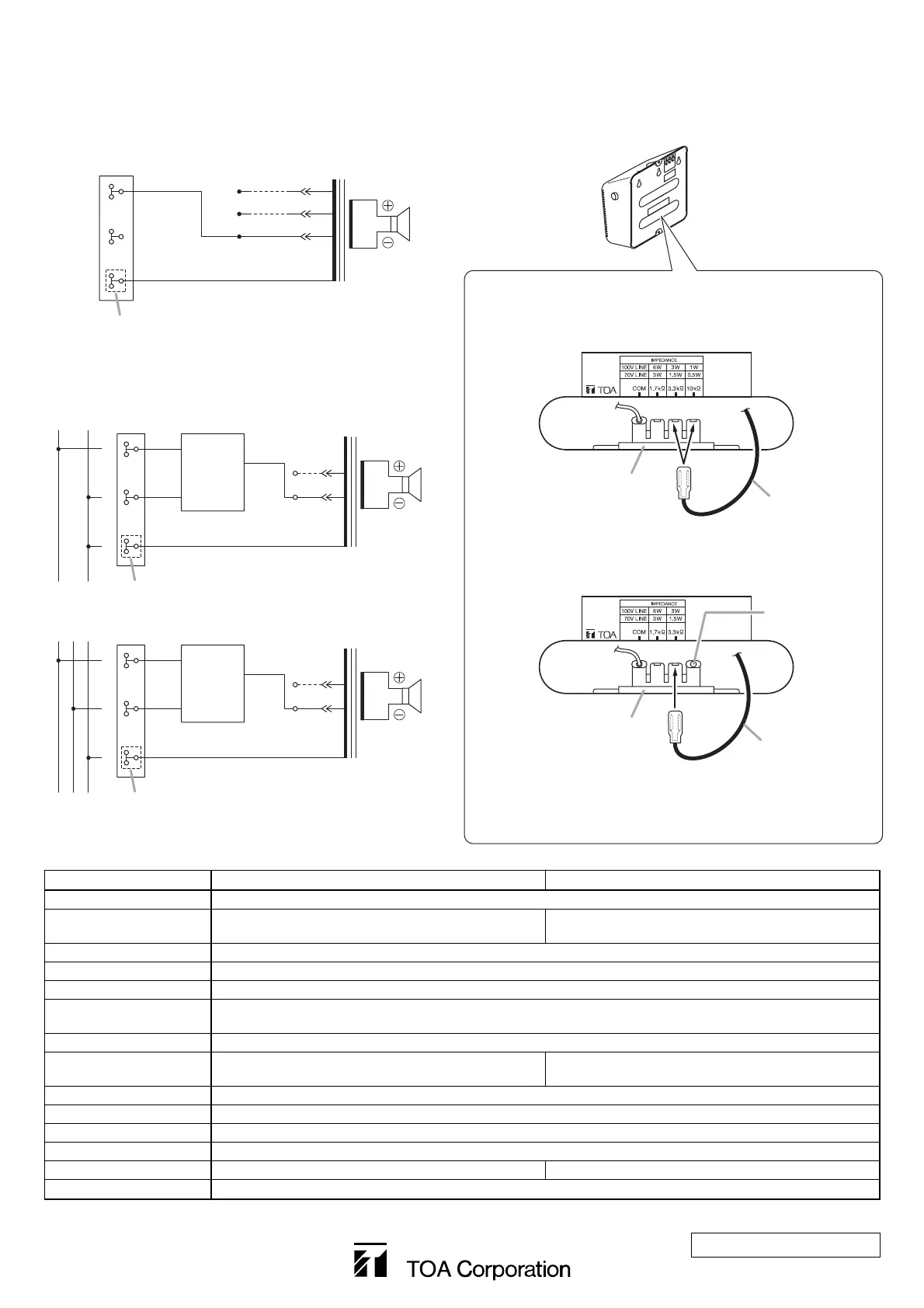 70 V line: 1.7 kΩ (3 W), 3.3 kΩ (1.5 W), 10 kΩ (0.5 W)