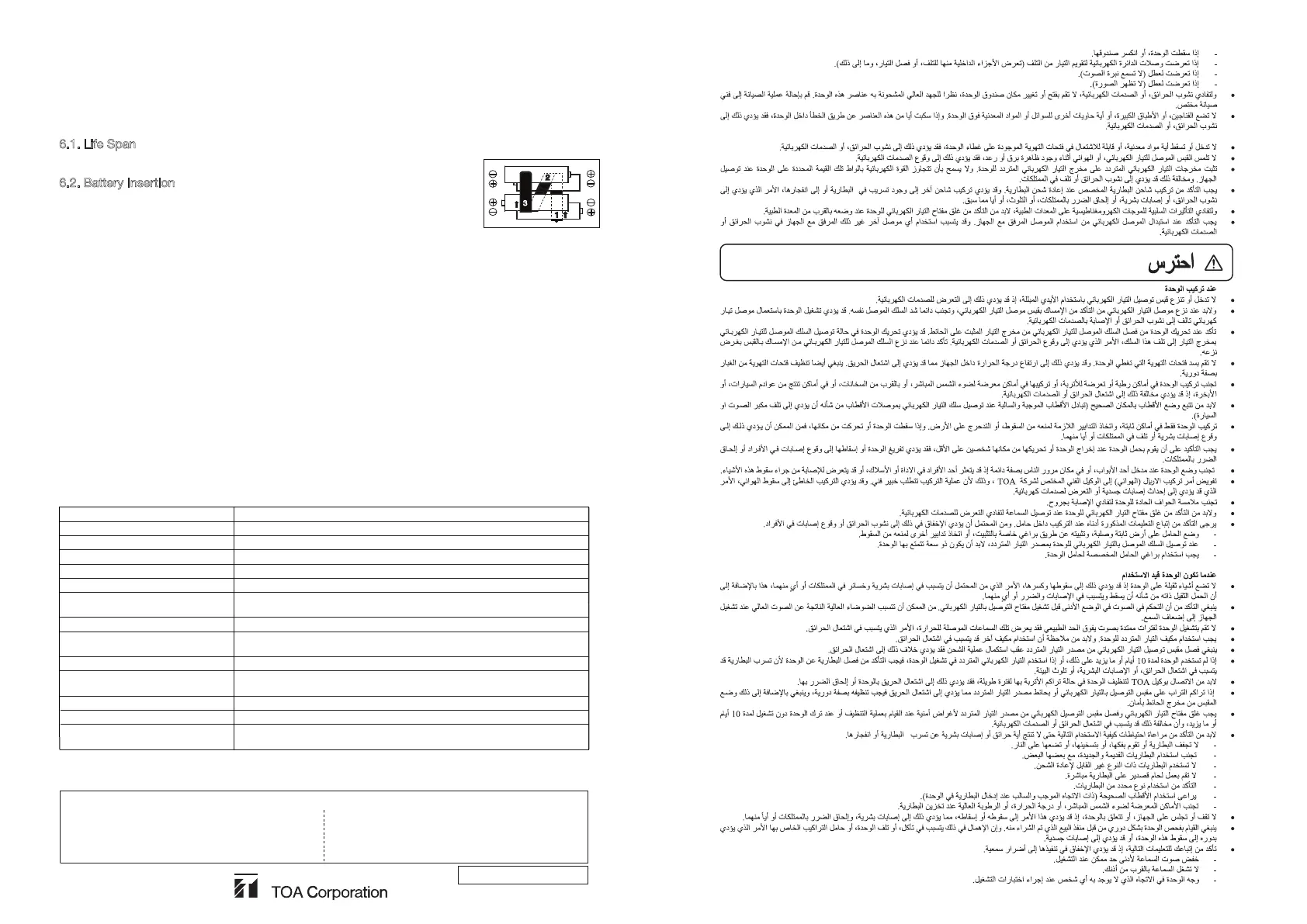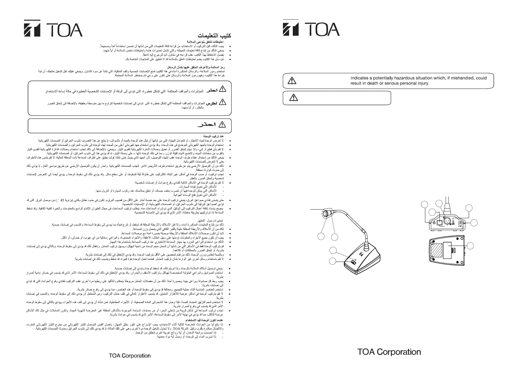 Do not open the cover to modification of unit. For service, contact the nearest TOA dealer.