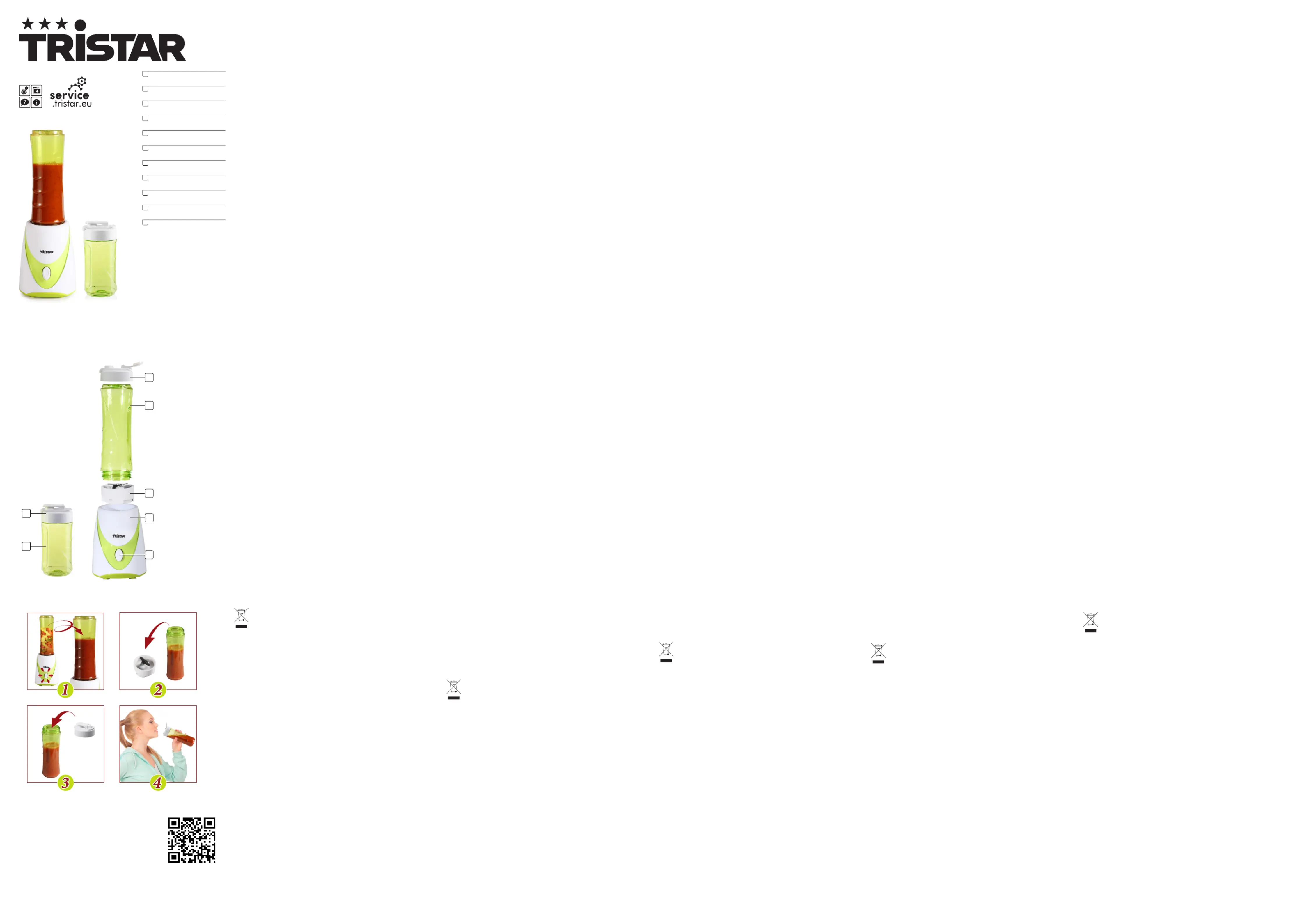 Läs gratis den bruksanvisning för Tristar BL-4438 (2 sidor) i kategorin Blandare. Guiden har ansetts hjälpsam av 16 personer och har ett genomsnittsbetyg på 3.9 stjärnor baserat på 8.5 recensioner. Har du en fråga om Tristar BL-4438 eller vill du ställa frågor till andra användare av produkten? Ställ en fråga