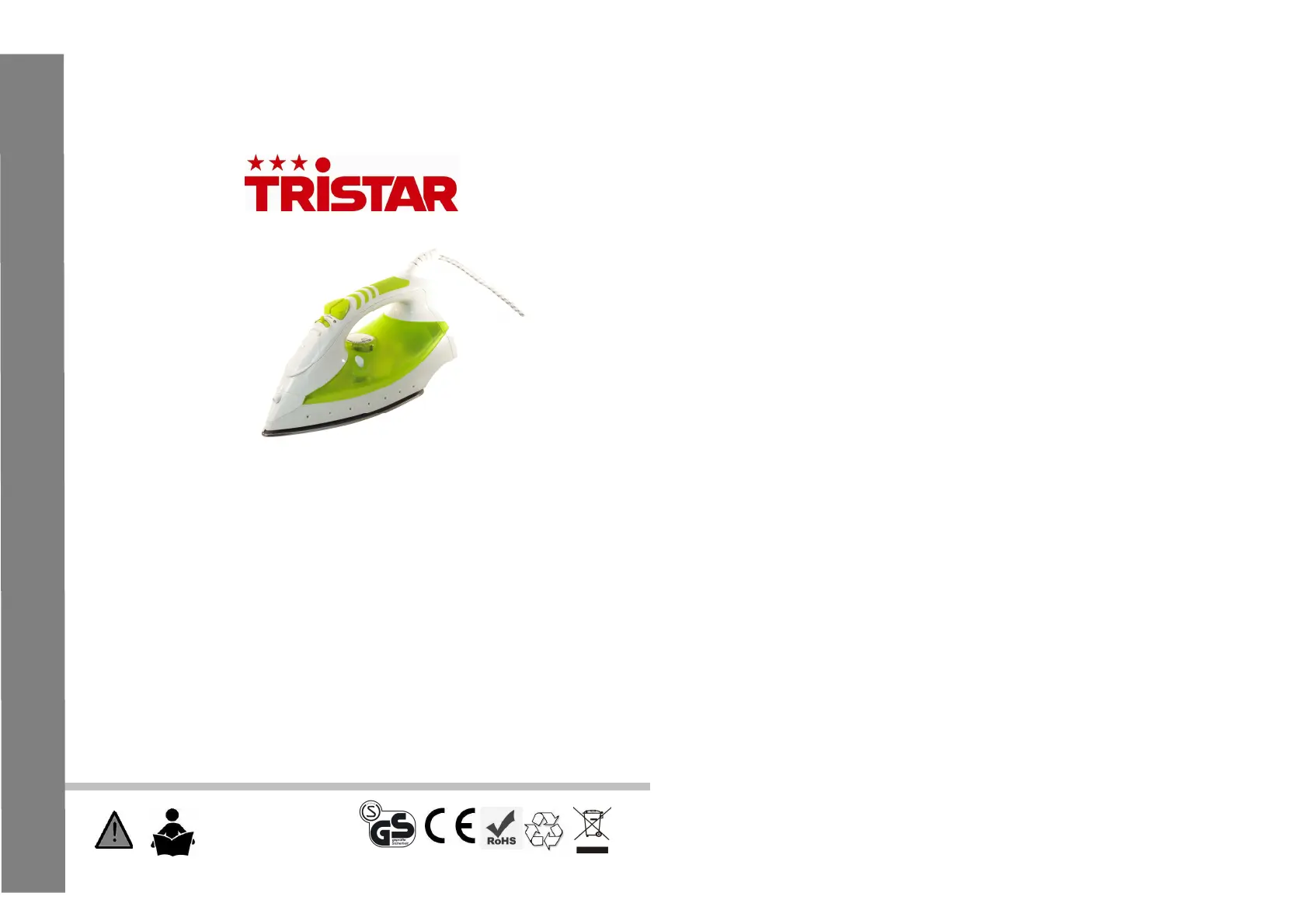 Läs gratis den bruksanvisning för Tristar ST-8233 (57 sidor) i kategorin Järn. Guiden har ansetts hjälpsam av 9 personer och har ett genomsnittsbetyg på 4.4 stjärnor baserat på 5 recensioner. Har du en fråga om Tristar ST-8233 eller vill du ställa frågor till andra användare av produkten? Ställ en fråga