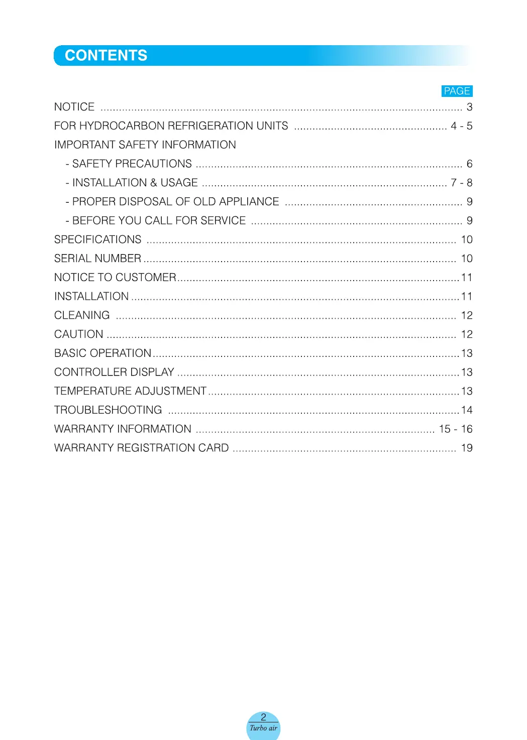 kylskåp Turbo Air Manualer