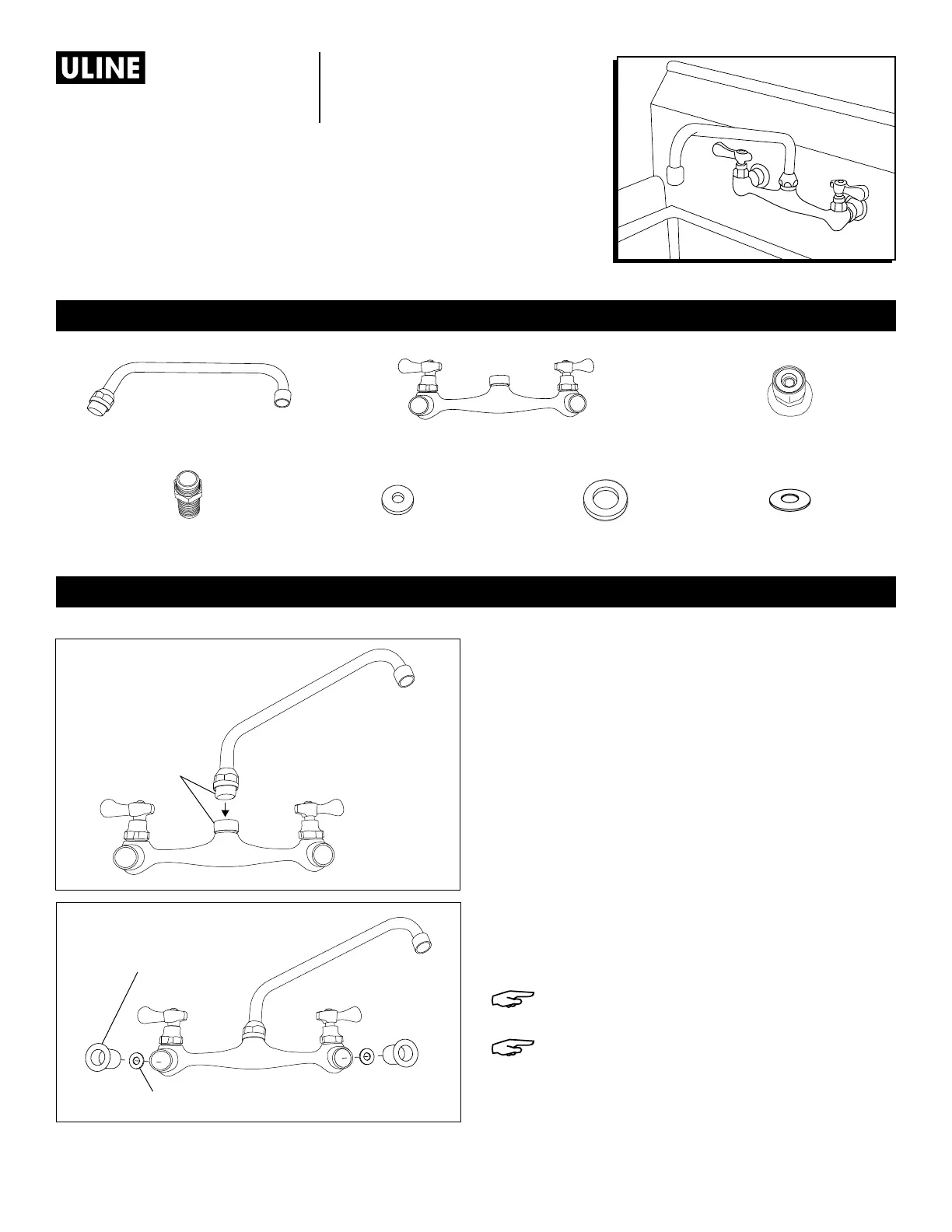 1. Remove plastic caps from faucet and faucet deck.