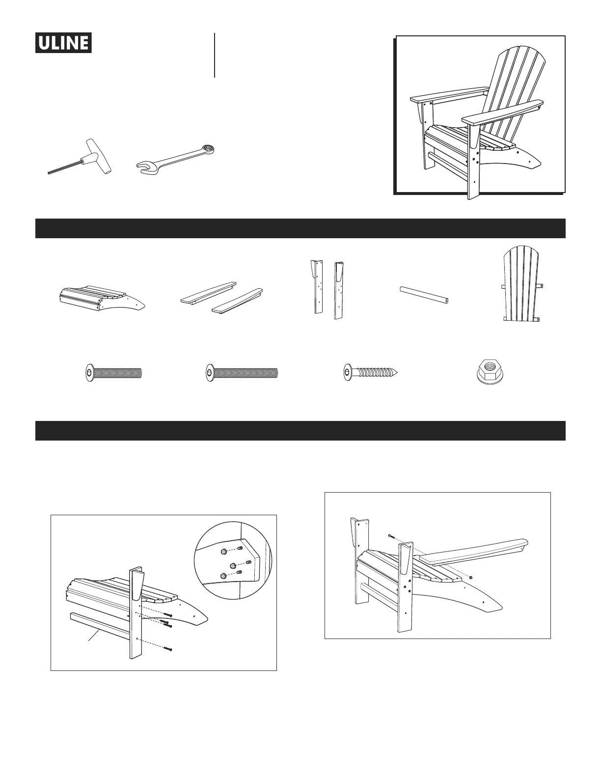 1. Attach leg to seat using three 1⁄" bolts and