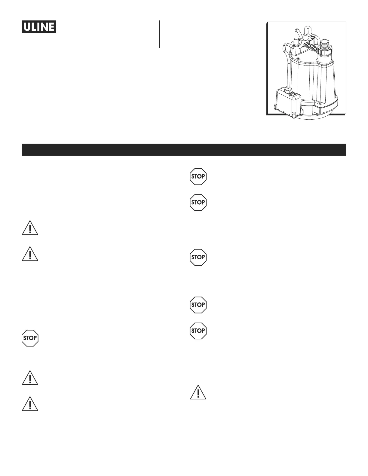 DANGER! Risk of electric shock. This pump