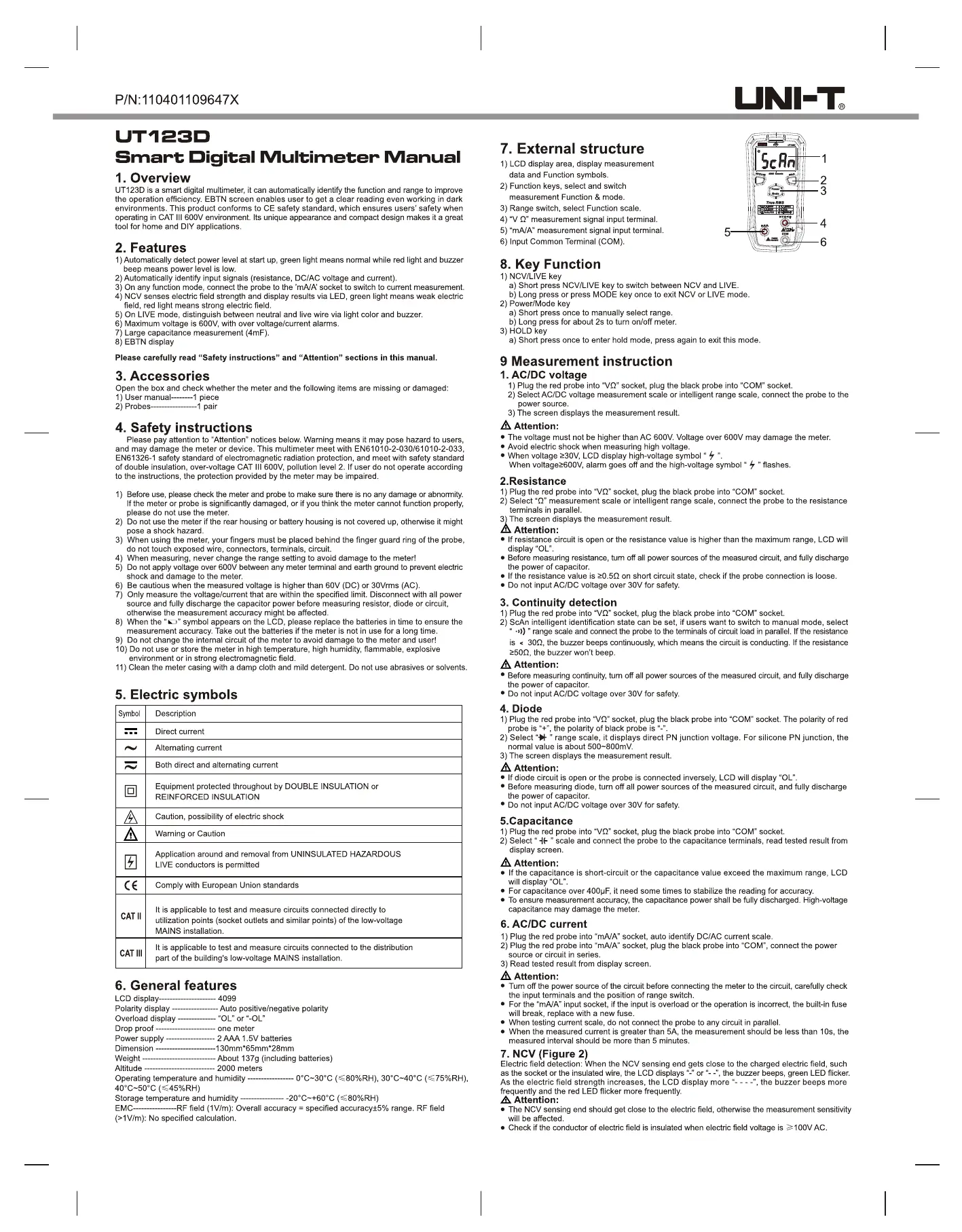 Uni-T UT123D Bruksanvisning
