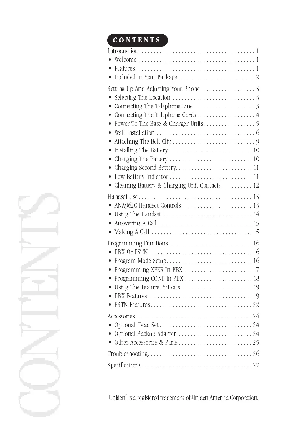 ANA9620 Handset Controls .......................13