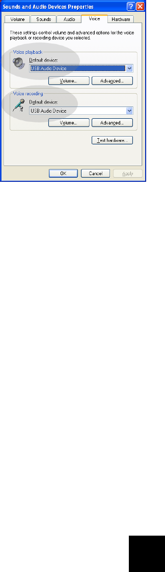 USB Audio Device is selected for both Voice play-