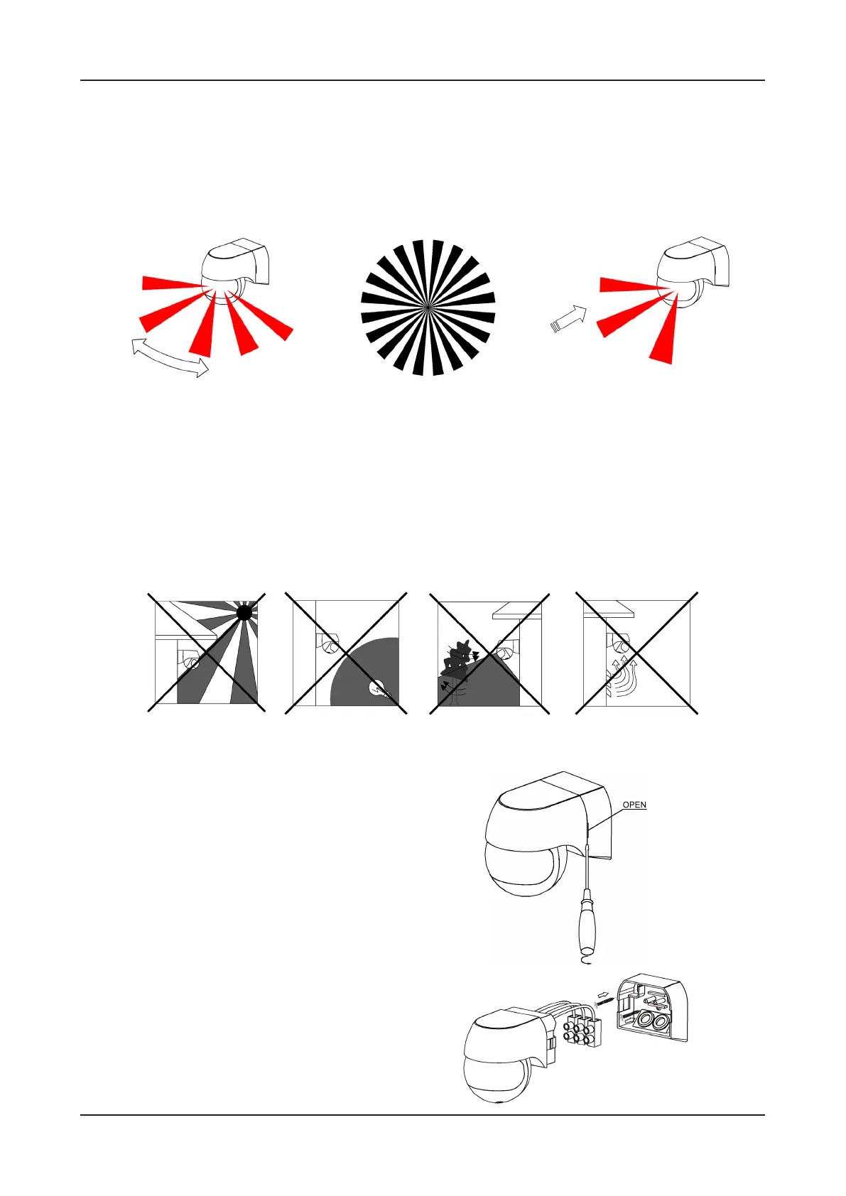 • Avoid pointing the detector towards objects that may move in the wind, such as curtains, tall