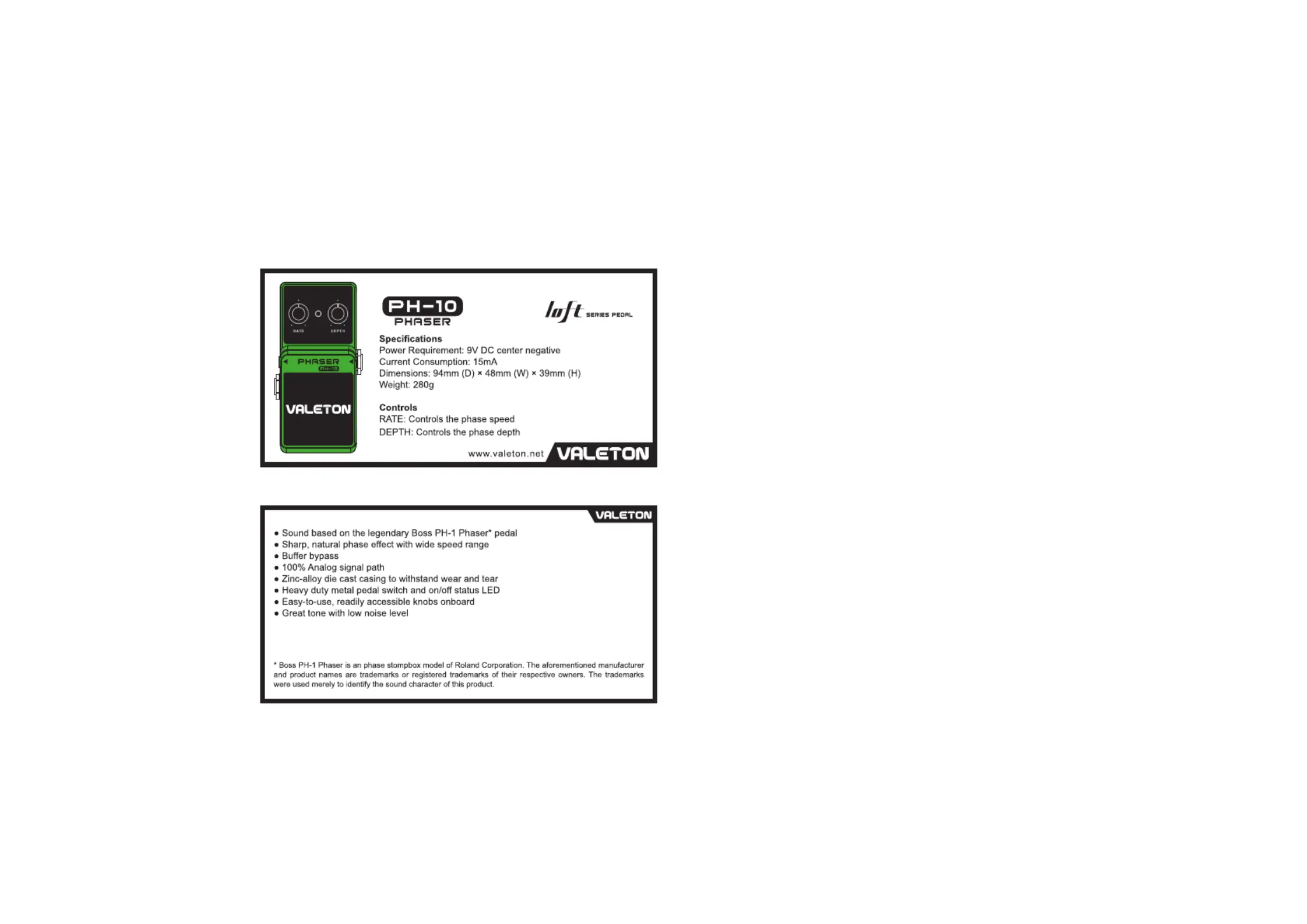 Valeton PHASER Bruksanvisning