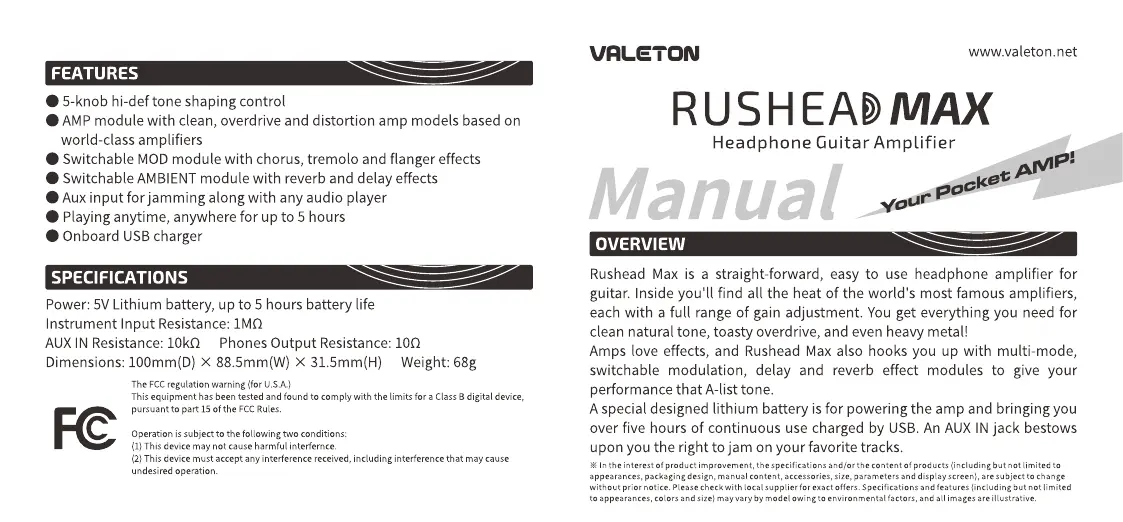 Valeton Rushead Max Bruksanvisning