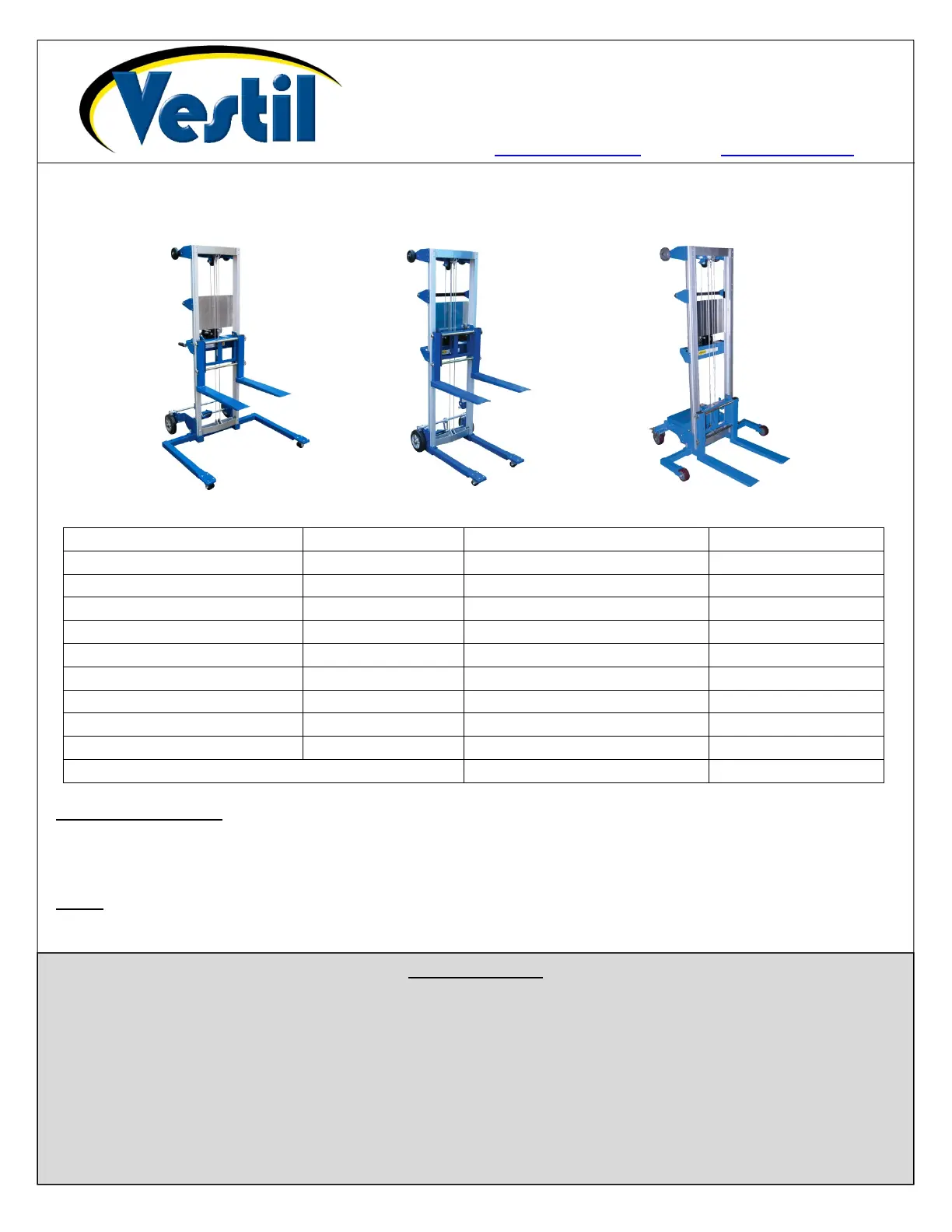 Copyright 2017 Vestil Manufacturing Corp. Page 2 of 12