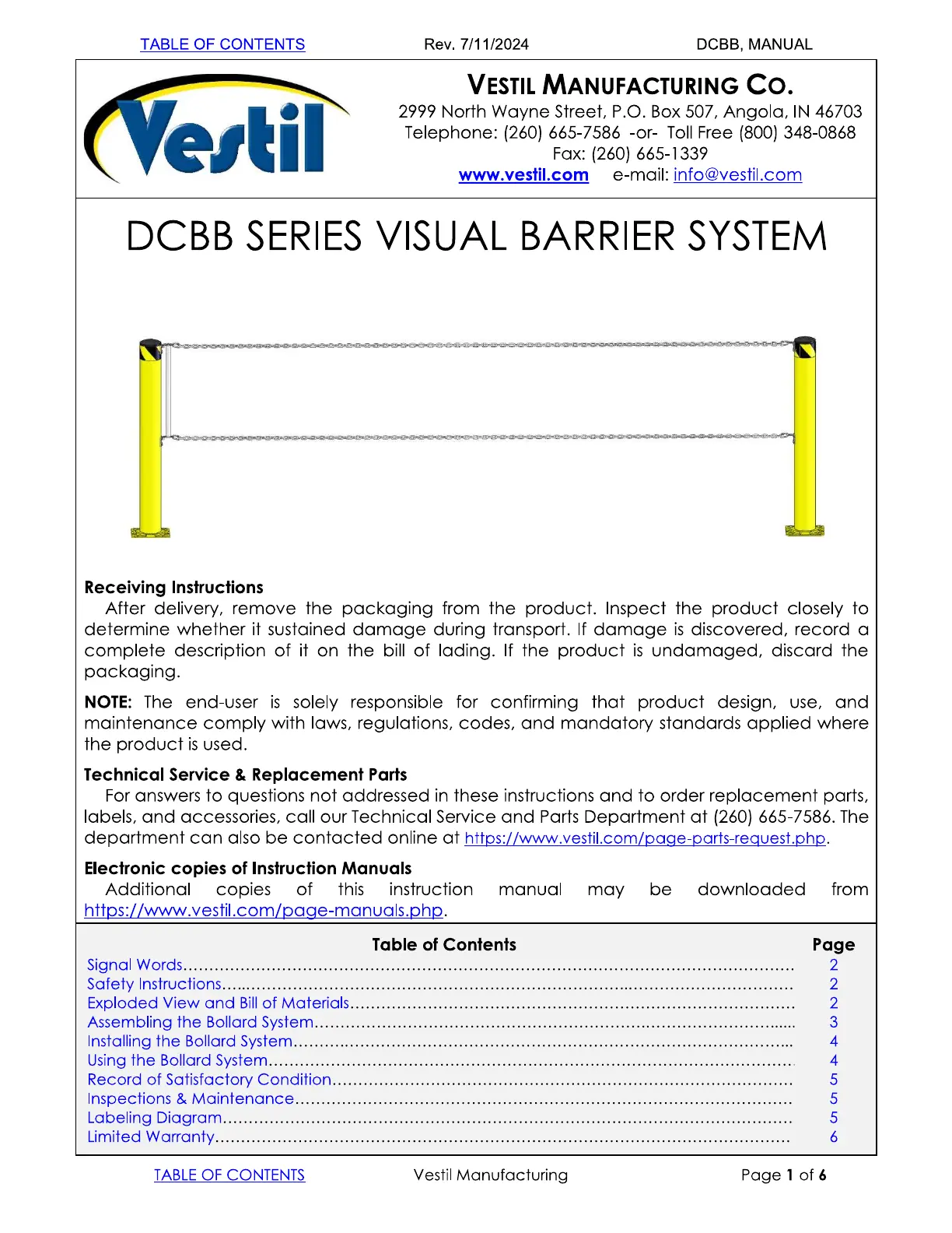 Vestil DCBB-42-4.5 Bruksanvisning