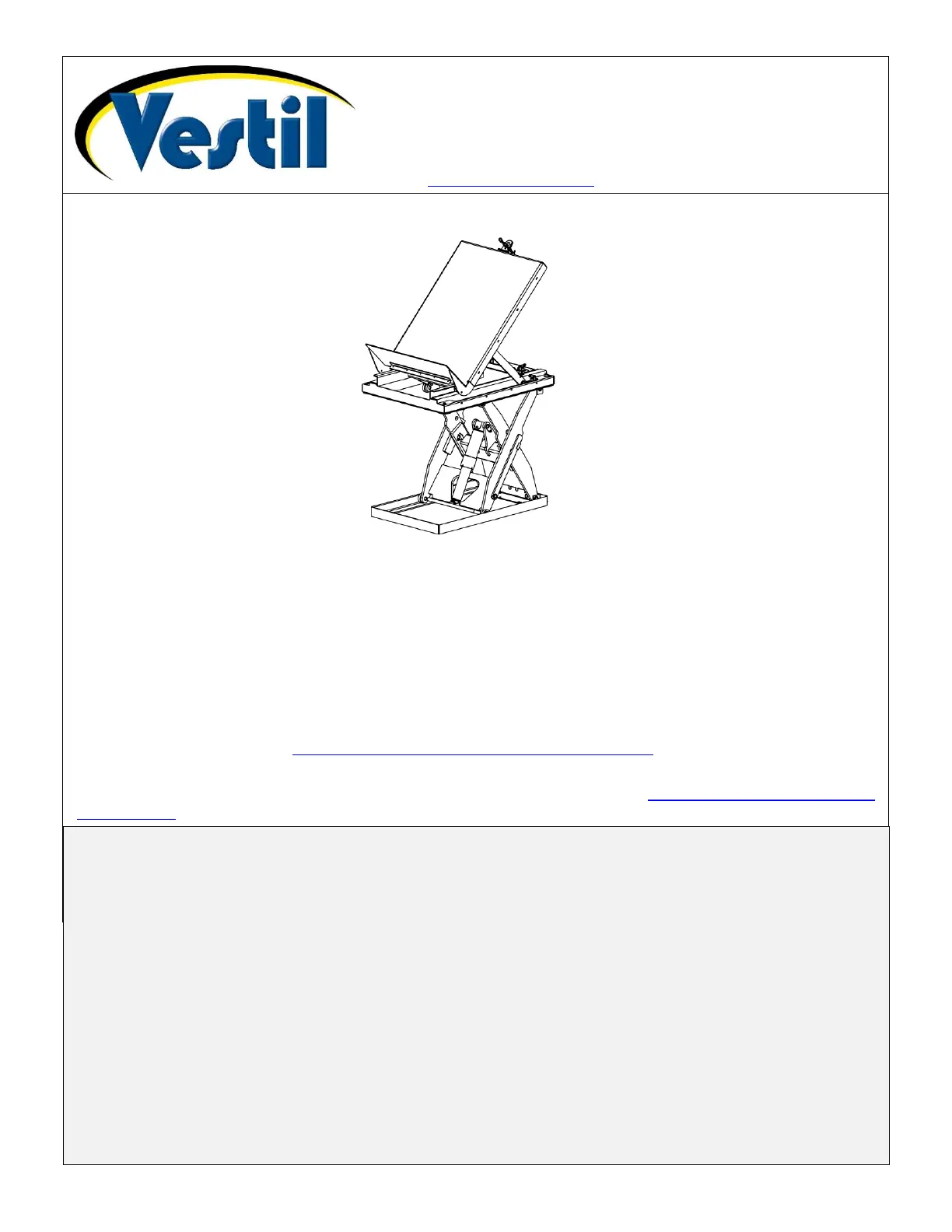 Additional copies of this instruction manual may be downloaded from https://www.vestil.com/page-
