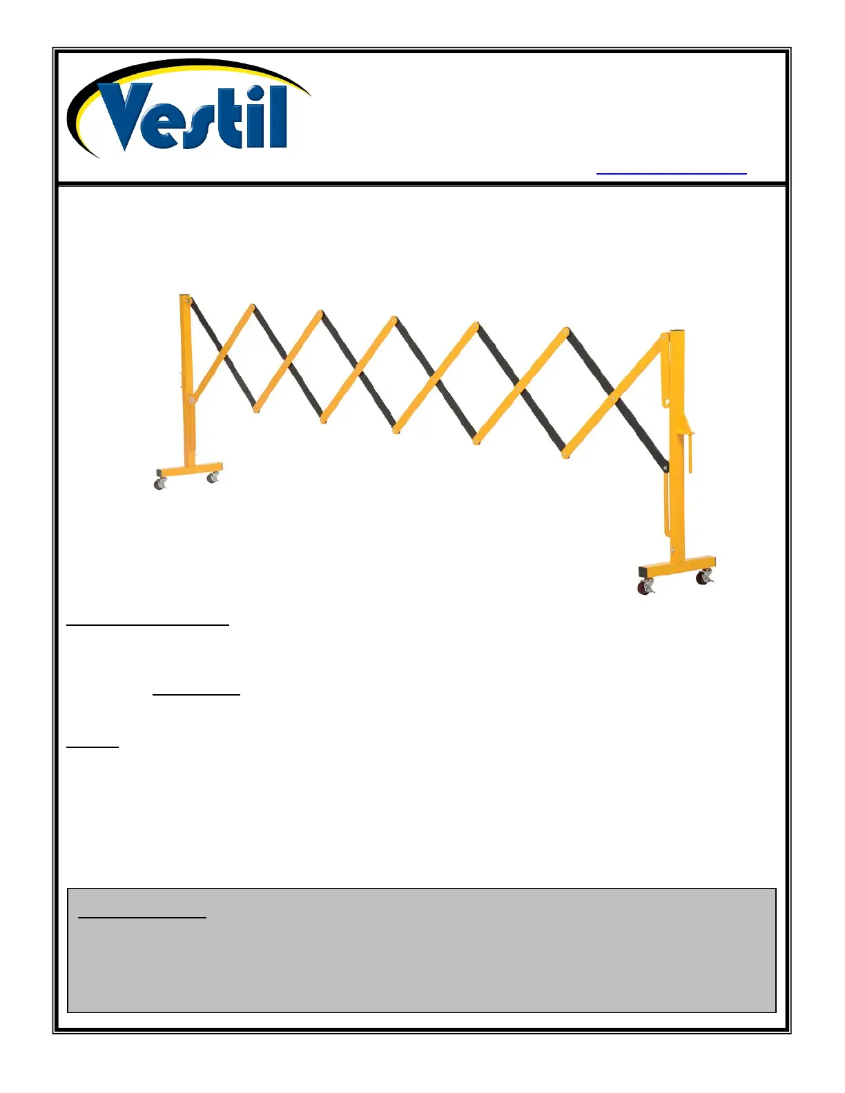 • DO NOT modify the product in any way UNLESS you first obtain written approval from Vestil. Unauthorized